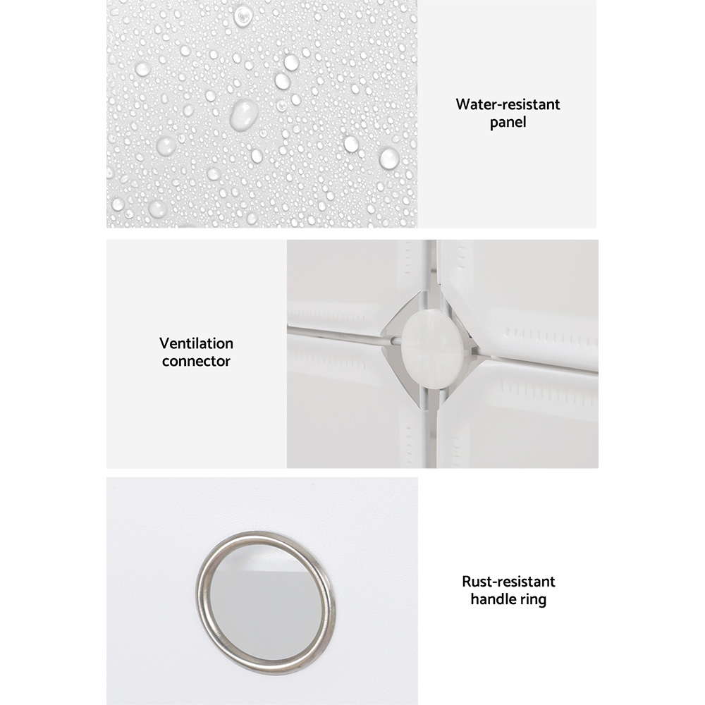 As your shoe collection grows, so should your shoe storage. An Artiss Shoe Cabinet is exactly what you need to keep loose shoes tidy and organised. Made from eco-friendly PP plastic and a strong steel frame, this multipurpose storage cabinet has a 2.5kg weight capacity per shelf, making it ideal for shoes as well as bags, coats or other items to help start your day. The micro-slit design between panels allows for easy ventilation, preventing bacteria growth, mould growth, and odours. Each panel is water-resistant with a rust-resistant handle ring for each door, making it easy to clean and maintain. Your purchase comes with accessories for two unique cabinet configurations, and shelves can be easily added or removed to store differently-sized shoes. You can even expand your shoe cabinet to fit your current storage requirements: simply visit our store and purchase additional units to multiply and expand. With so many options at your disposal, its easy to see why the Artiss Shoe Cabinet is the right choice for your entryway, bedroom, or walk-in wardrobe.