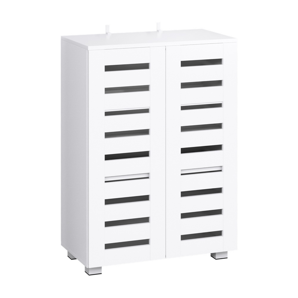 Discover seamless organisation with our Artiss Alster Shoe Cabinet. Featuring durable construction, a melamine finish, and two compartments with storage space for up to 20 pairs of shoes, it marries style with functionality – transforming clutter into a tastefully organised display in your entryway. With five storage tiers and three adjustable shelves, you can accommodate all different types of shoes and other accessories. The ventilated doors are perfect to encourage proper airflow and prevent mould and mildew, and they’re set on heavy-duty hinges and magnetic door fittings for long-lasting use. Best of all, you purchase includes an anti-tip kit for safety. Enjoy your new organised and tidy hallway with the Artiss Alster Shoe Cabinet.