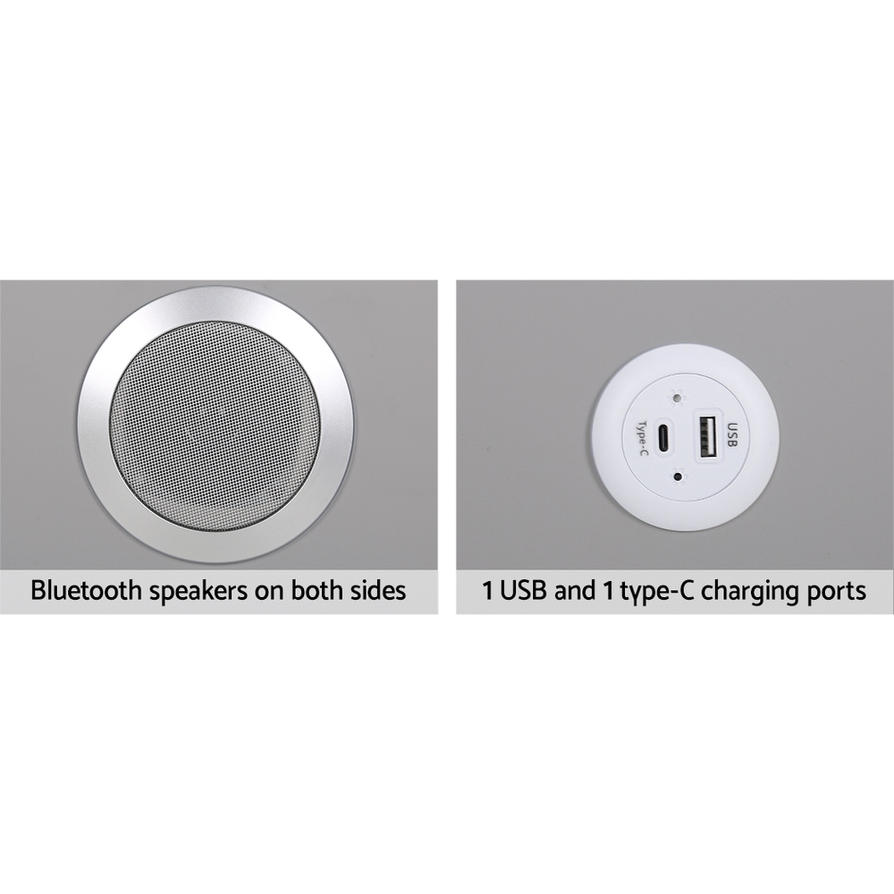 Upgrade your living space with the Artiss Aida Smart Bedside Table. The table allows you to charge your phone wirelessly or via USB, and also contains a Bluetooth speaker to listen to your favourite tunes. Constructed from quality MDF upholstered with premium PU leather and topped with a tempered glass tabletop, the smart table is perfectly stylish and durable. The two drawers feature sleek metal handles and ample storage space for all your night-time essentials. With one USB and one type C charging port, you can charge your devices both wirelessly and wired. Adjust the light-up charging panel to achieve the perfect ambience for sleep. The metal legs will keep your table standing, while anti-slip pads keep the piece in place and protect your floors. Easy to assemble and even easier to maintain, you’ll love the style and functionality of the Aida Smart Bedside Table from Artiss.