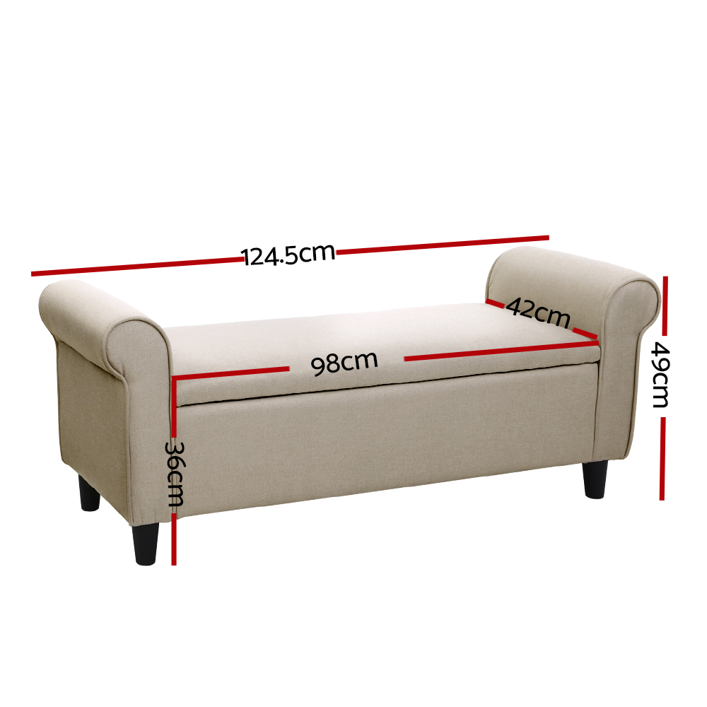 Artiss Storage Ottoman Blanket Box 125cm Arm Linen Taupe