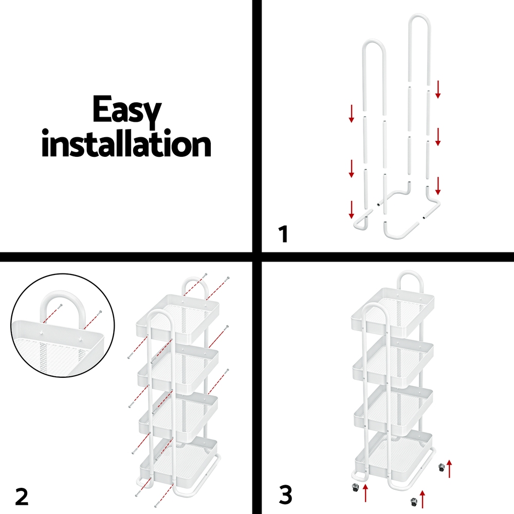 Artiss Storage Trolley Kitchen Cart 4 Tiers White