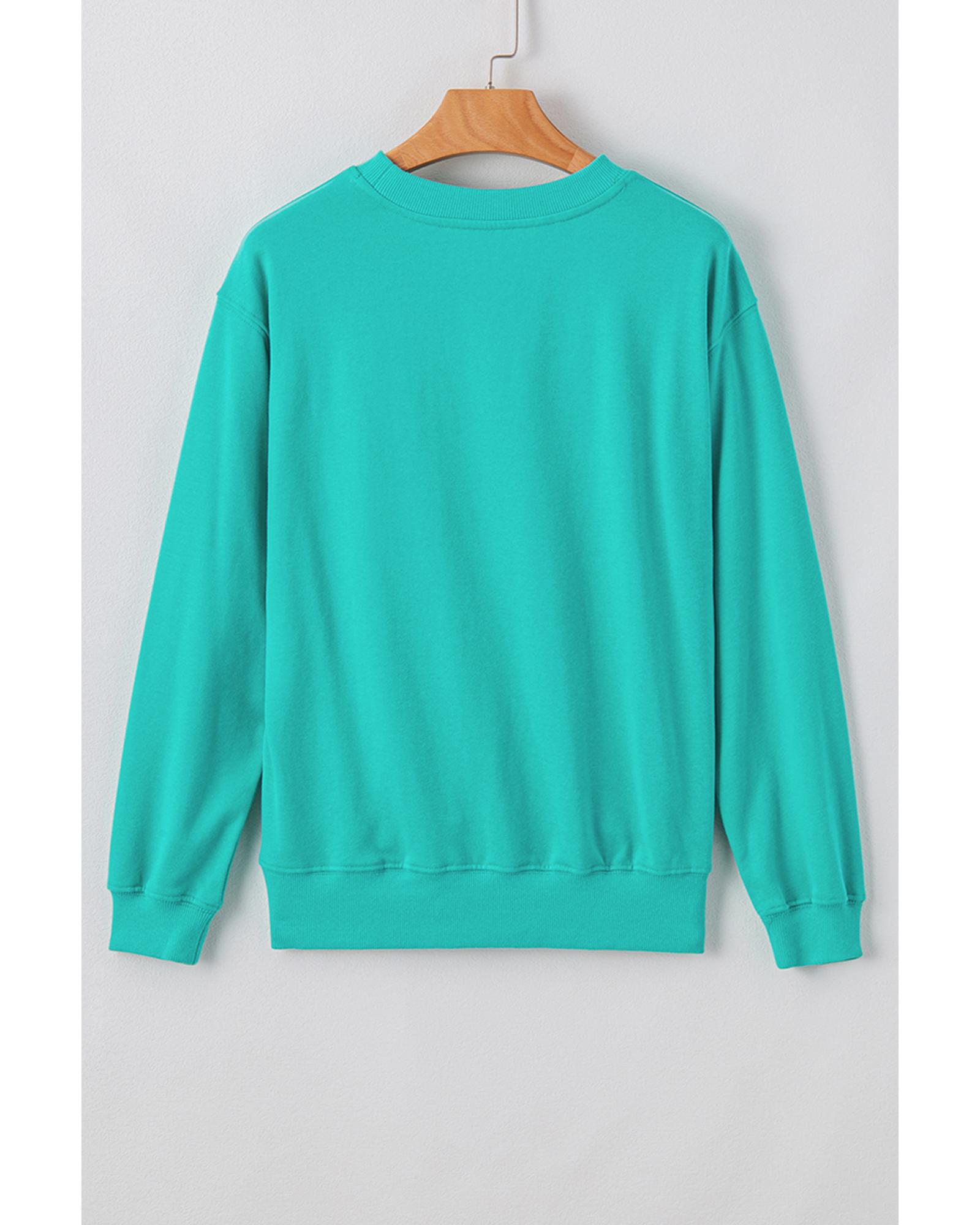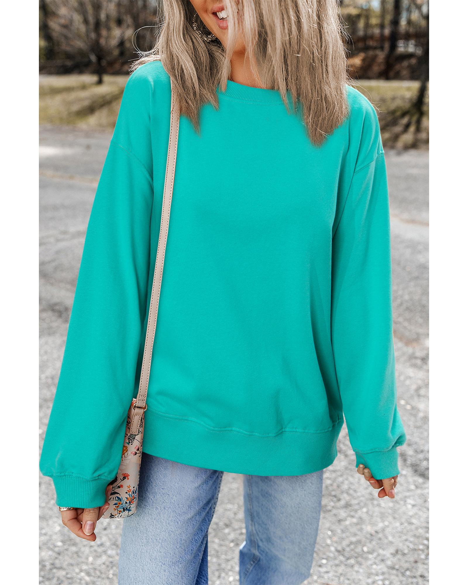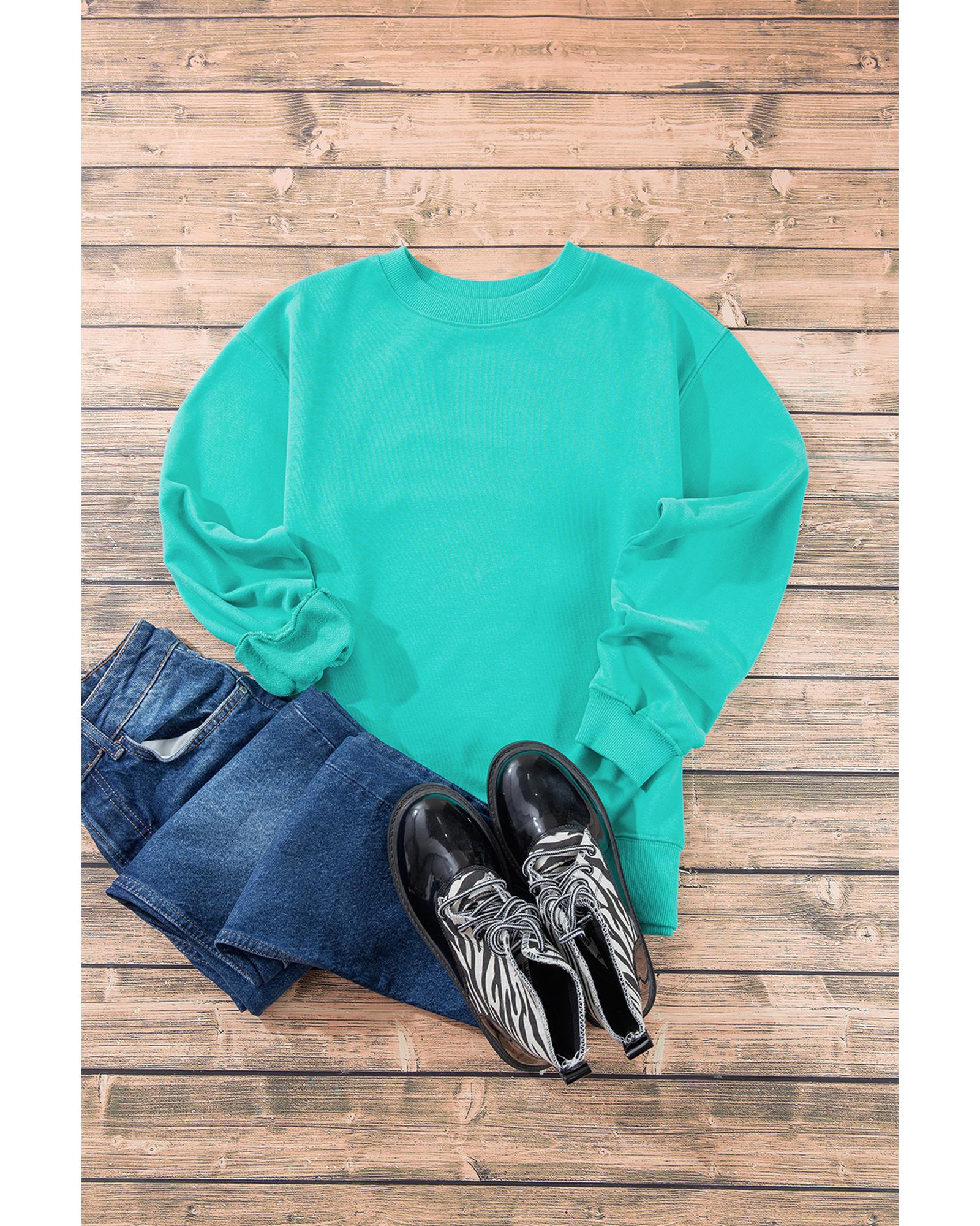 Aruba Blue Plain Drop Shoulder Crewneck Pullover Sweatshirt – S