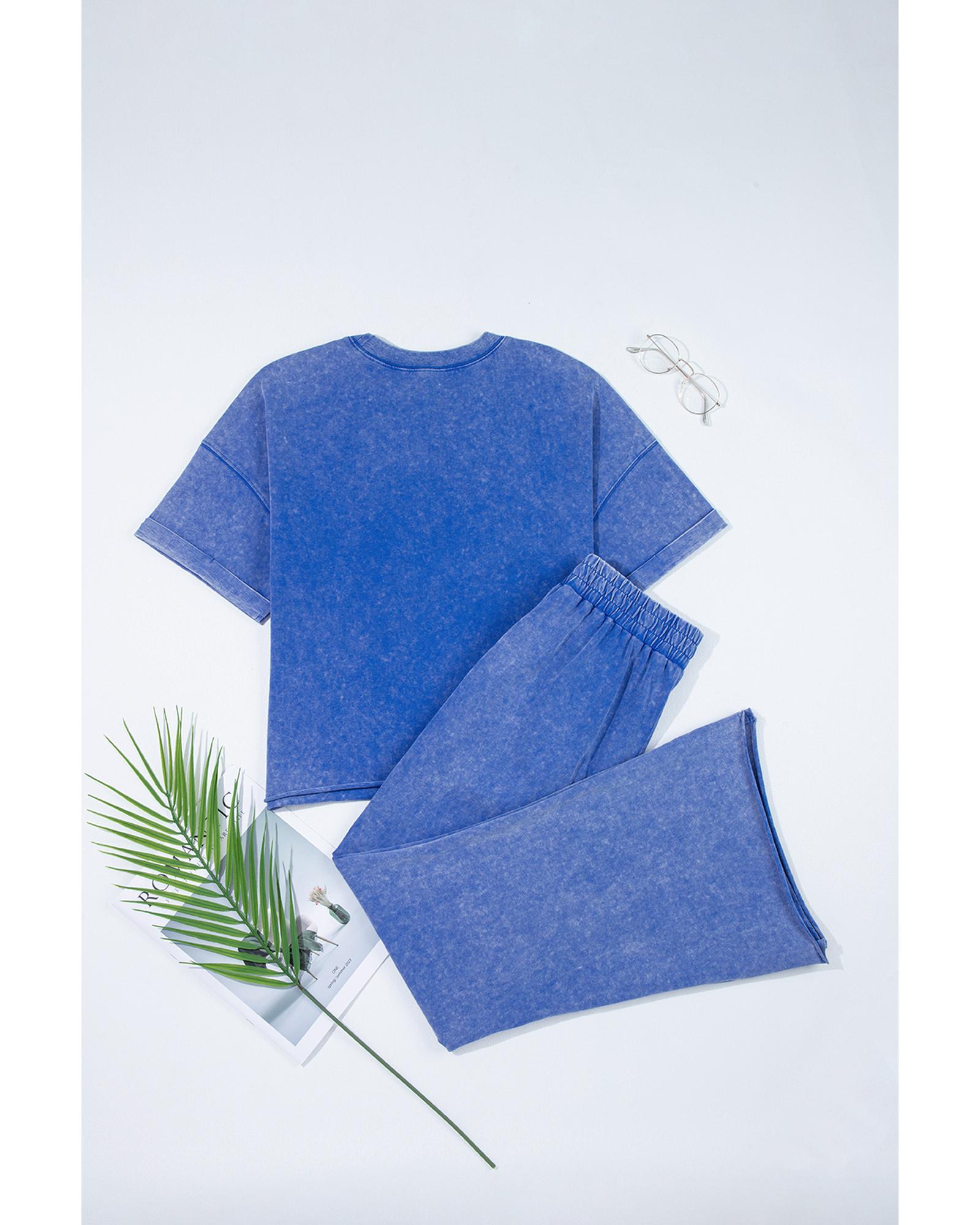 Ashleigh Blue Acid Wash Star Patched Rolled Trim Pants Set – S