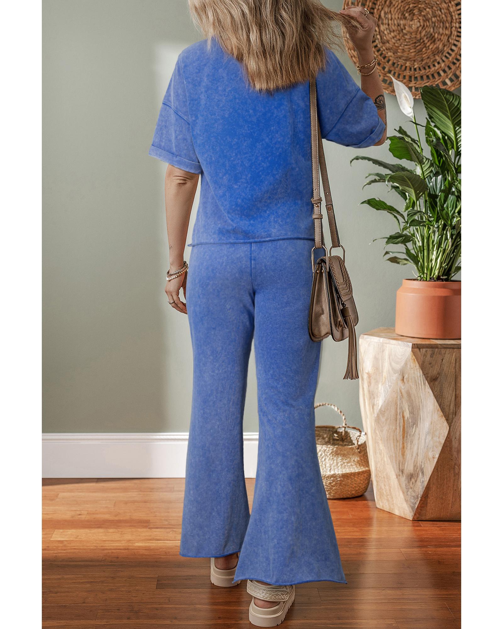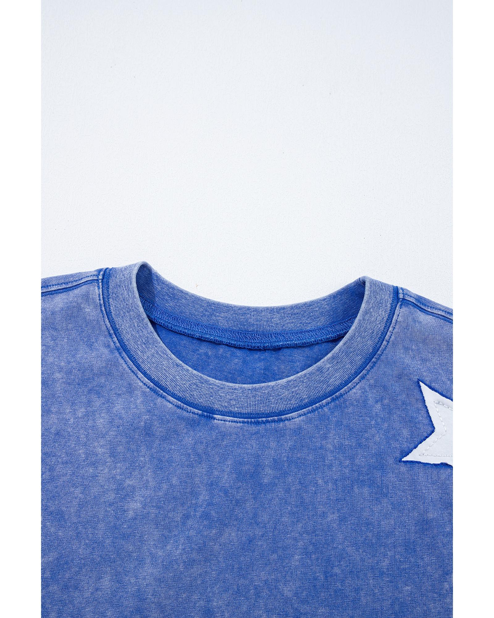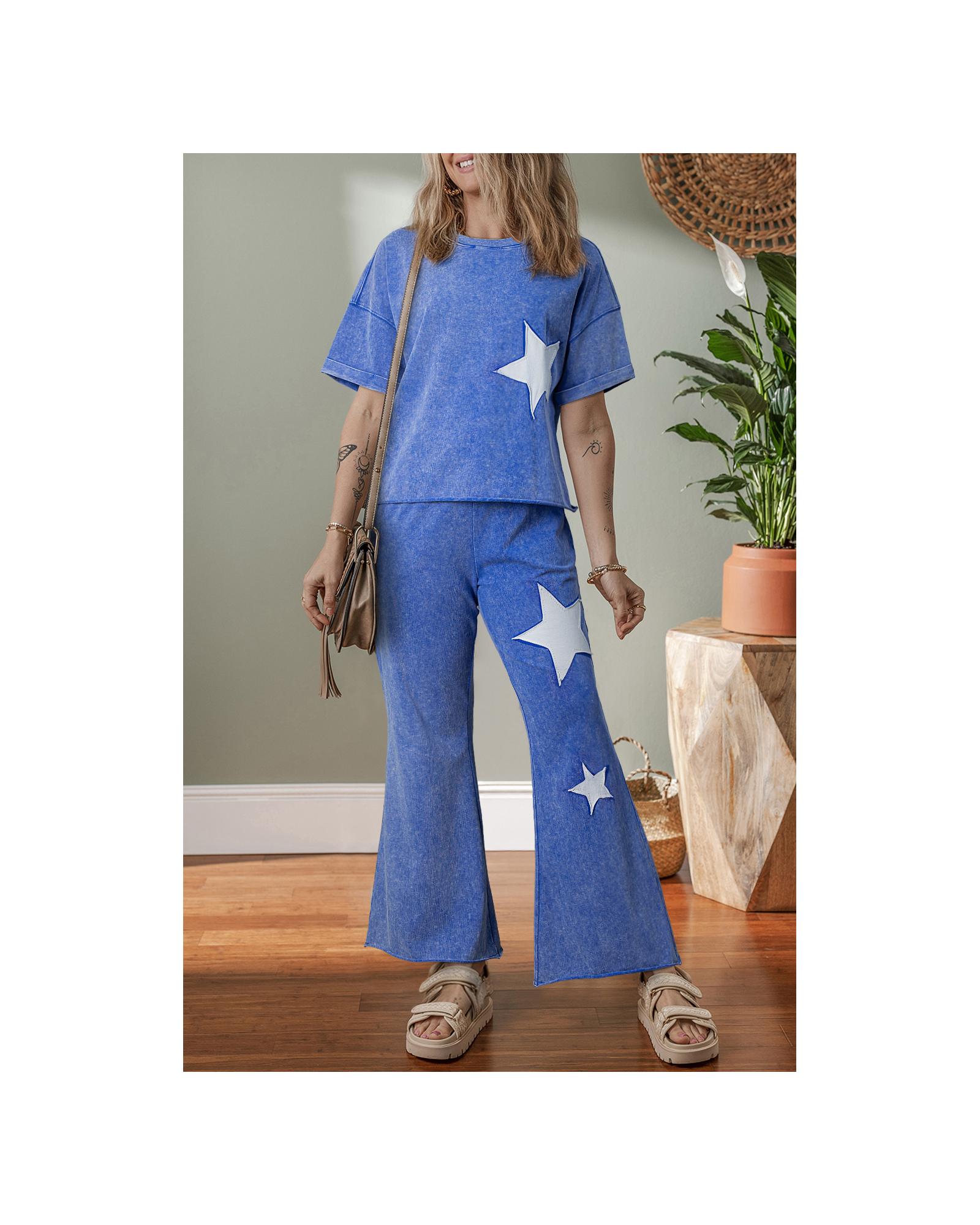 Ashleigh Blue Acid Wash Star Patched Rolled Trim Pants Set – XL