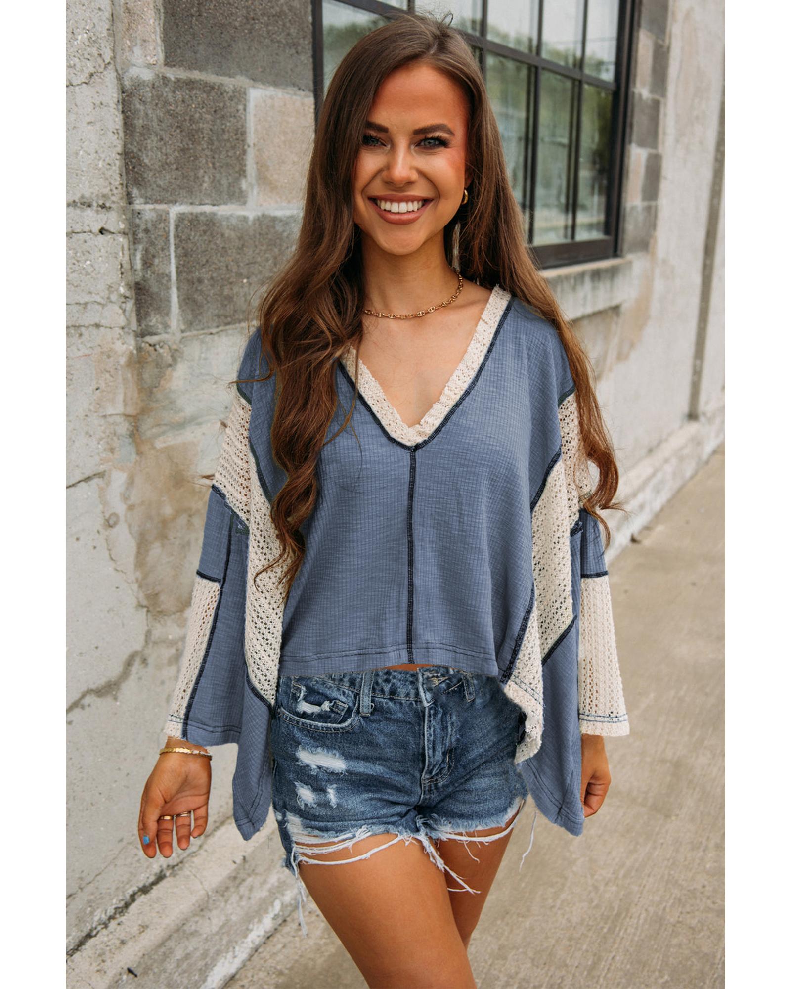 Ashleigh Blue Crochet Detail Exposed Seam High Low Loose Top – L