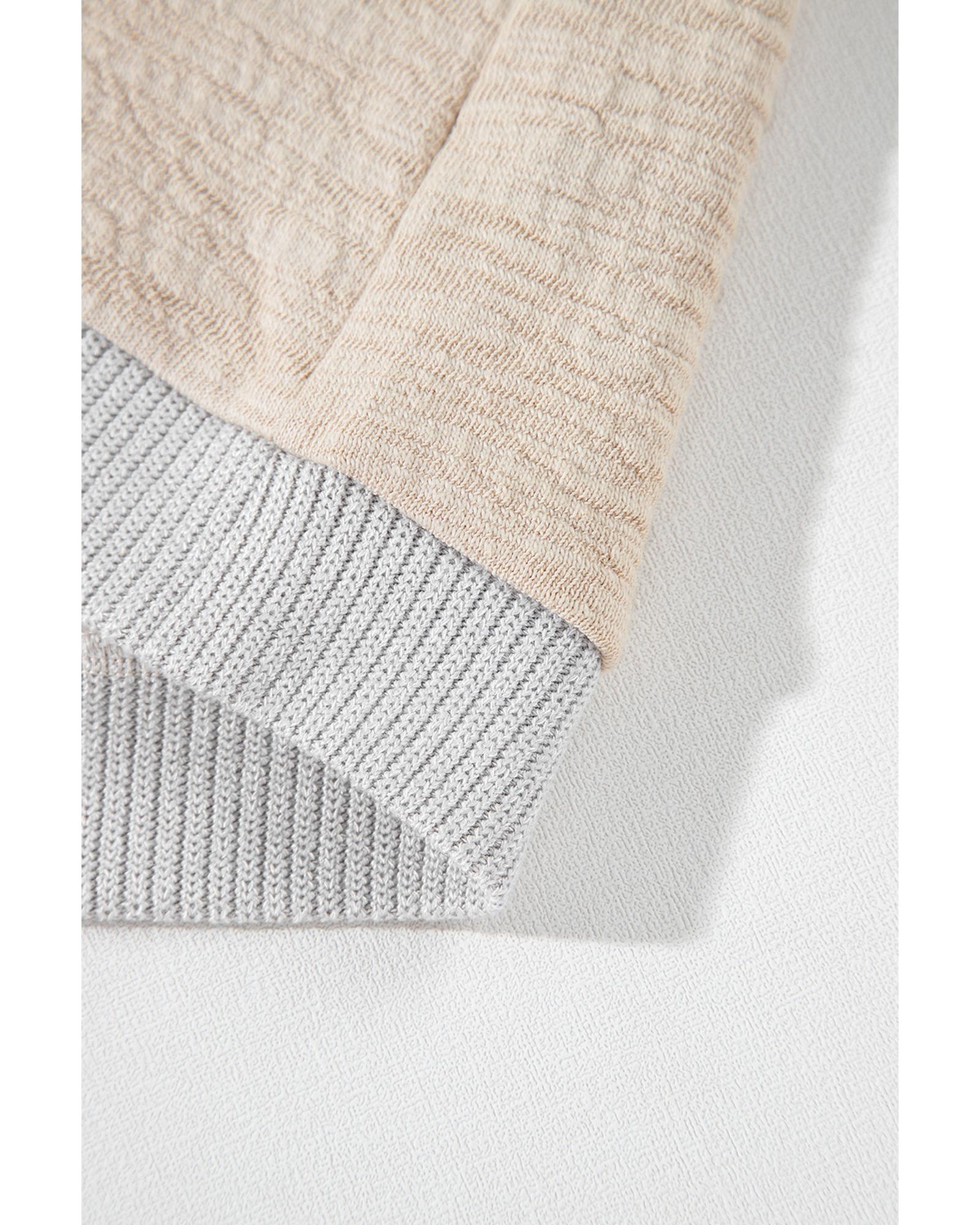Ashleigh Blue Plus Size Textured Colorblock Patchwork V Neck Top – 3X