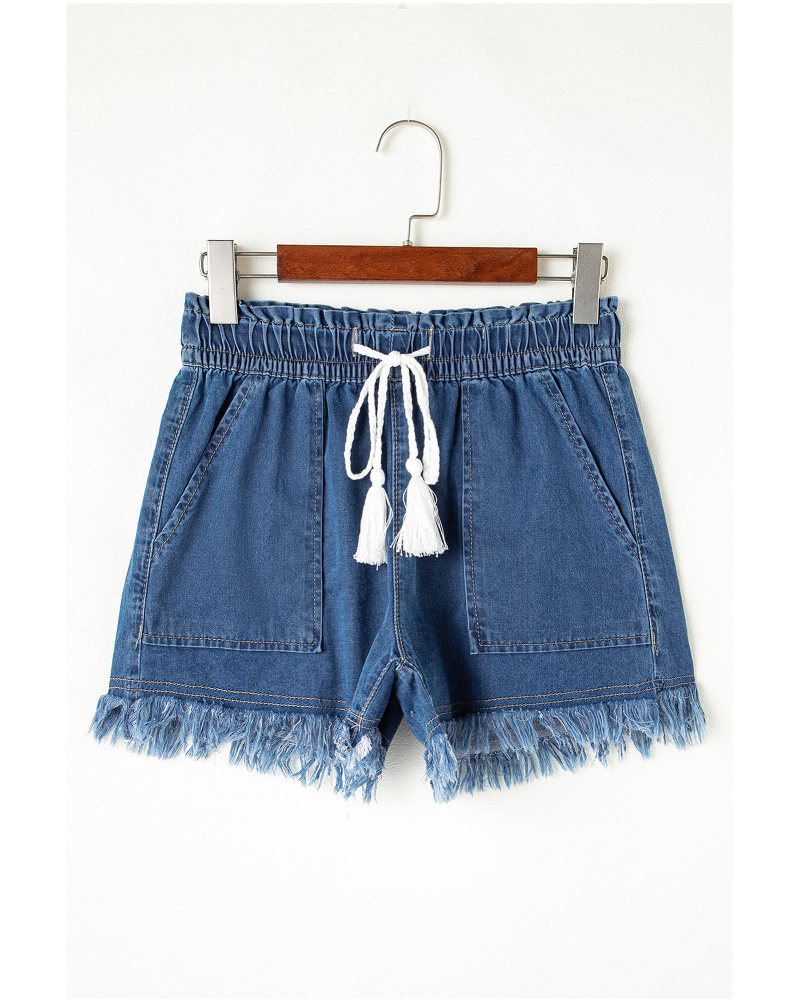 Ashleigh Blue Raw Hem Drawstring High Waist Denim Shorts with Pockets – 8 US