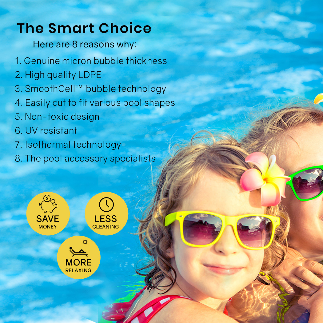 The genuine 400 Micron Bubble is a weight and thickness for pool owners who wish to regularly take the cover on and off with ease, while durable enough to withstand tearing, sun and chemical damage. Your pool will be exceptionally clean all year with the cover denying any debris access to the water.