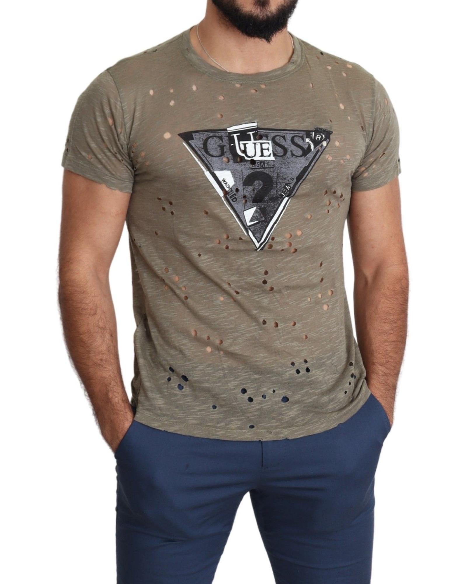Authentic Guess Brown Cotton Stretch T-Shirt XL Men