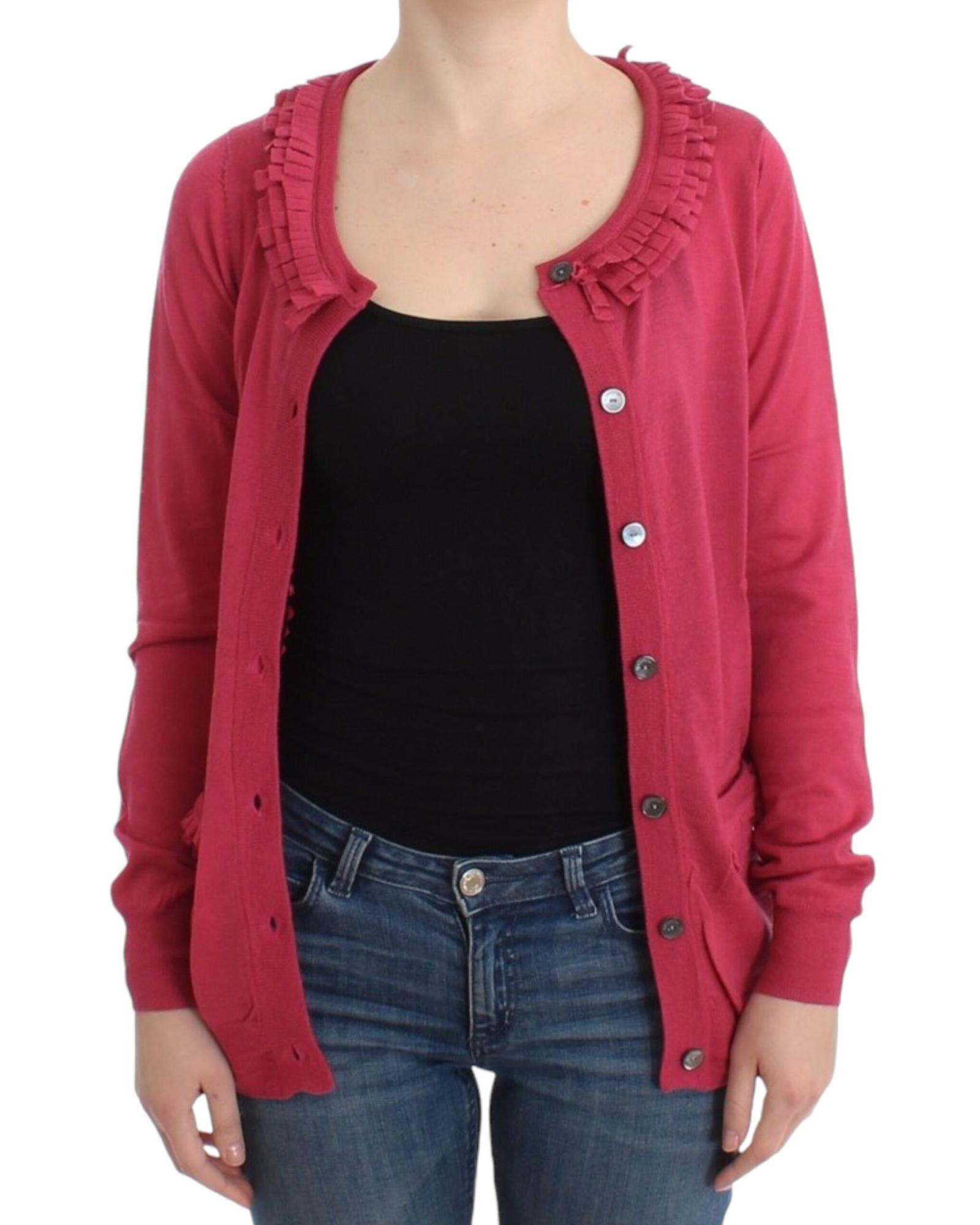 Authentic John Galliano Pink Wool Cardigan with Logo Details S Women