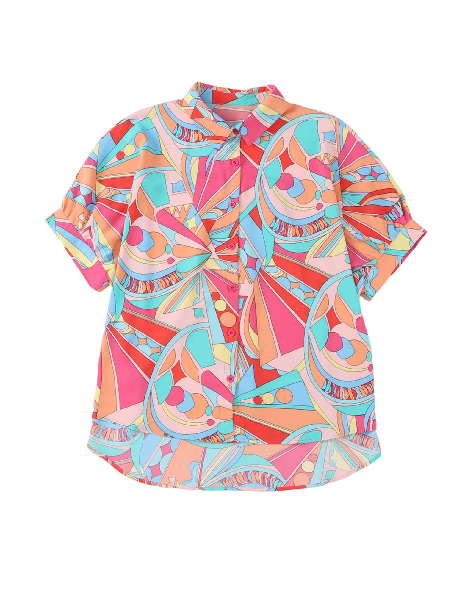 Azura Exchange Abstract Geometry Print Half Puff Sleeve Shirt – M
