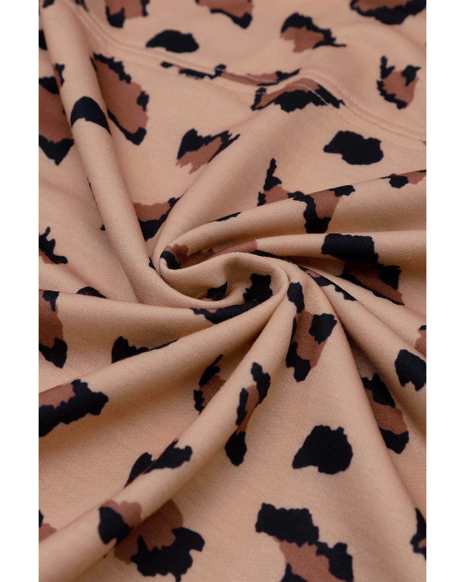 - Brown Animal Print Stitching Loose Long Sleeve Top