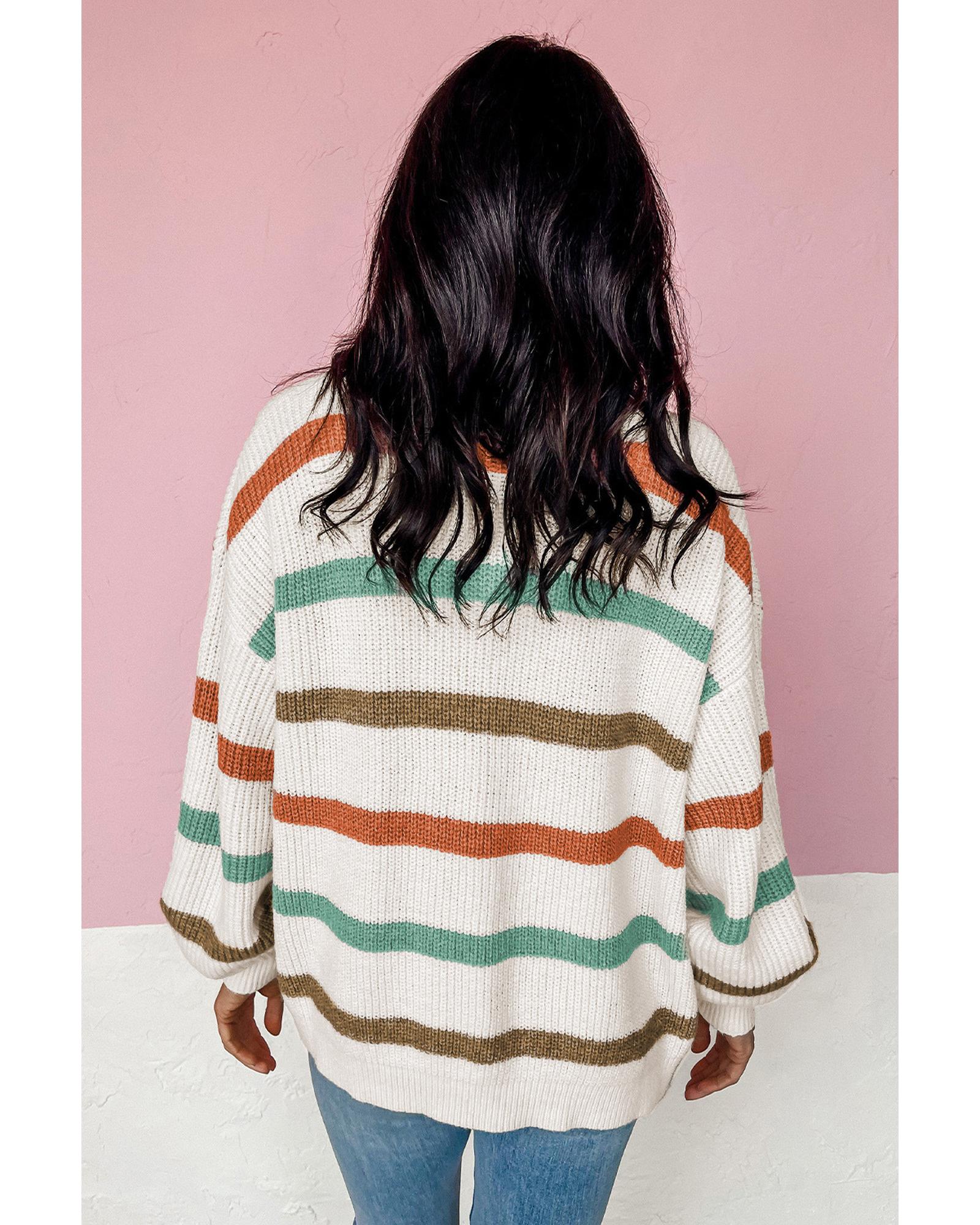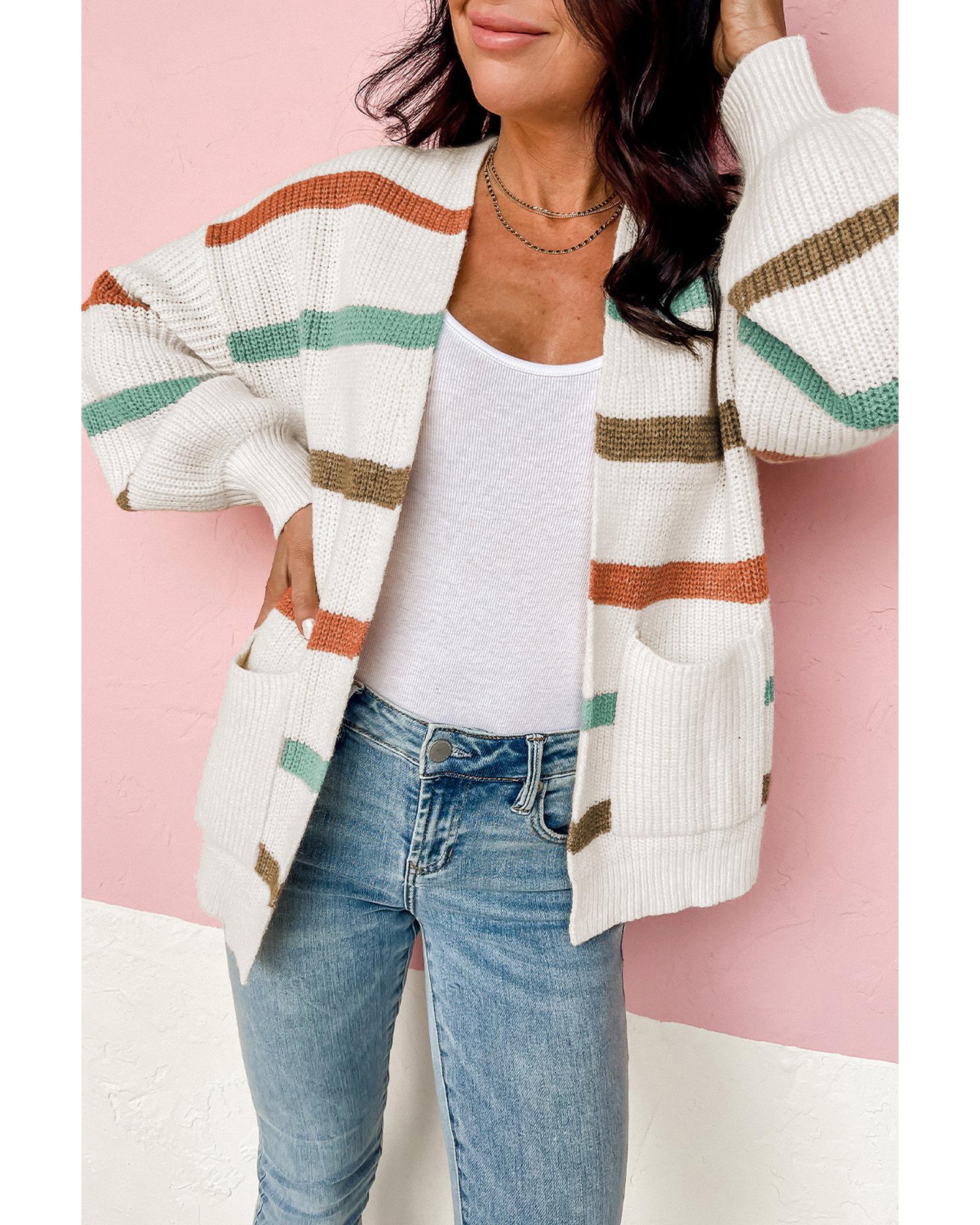 Azura Exchange Beige Drop Shoulder Pocketed Stripe Sweater Cardigan – 2XL