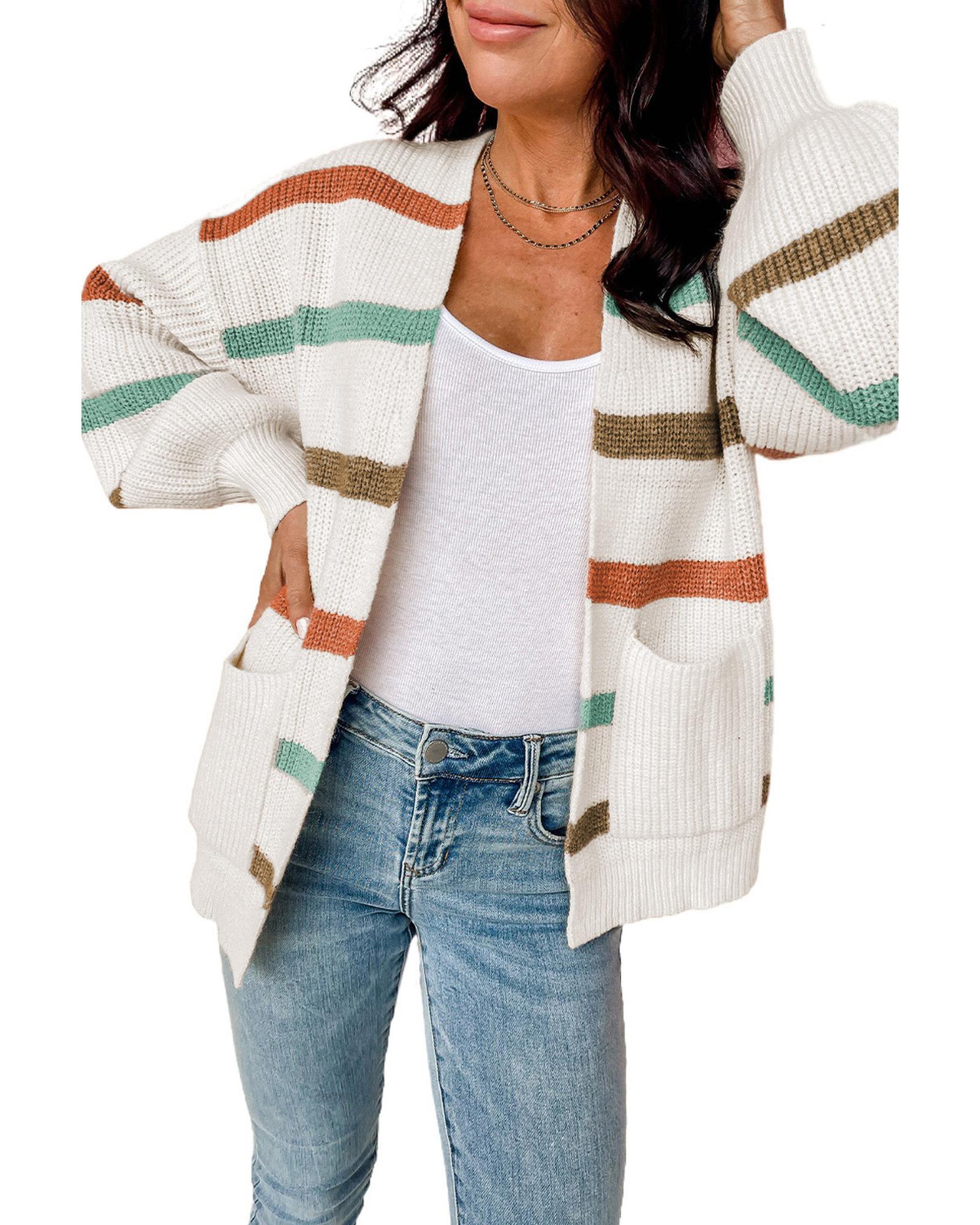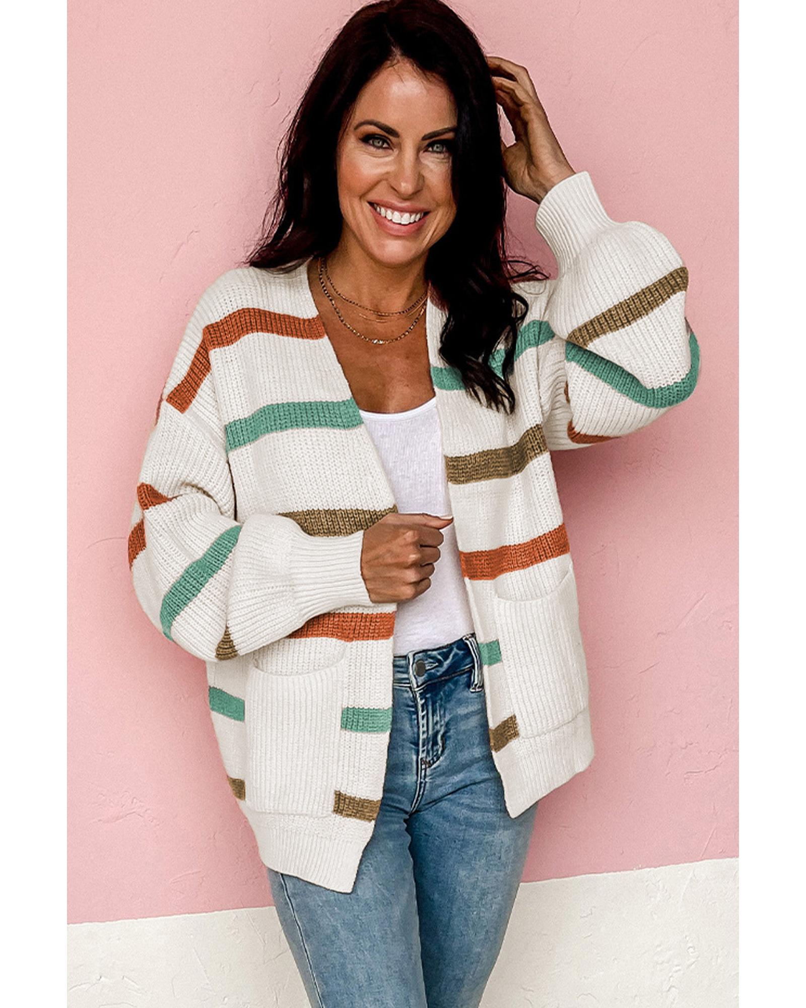 Azura Exchange Beige Drop Shoulder Pocketed Stripe Sweater Cardigan – XL