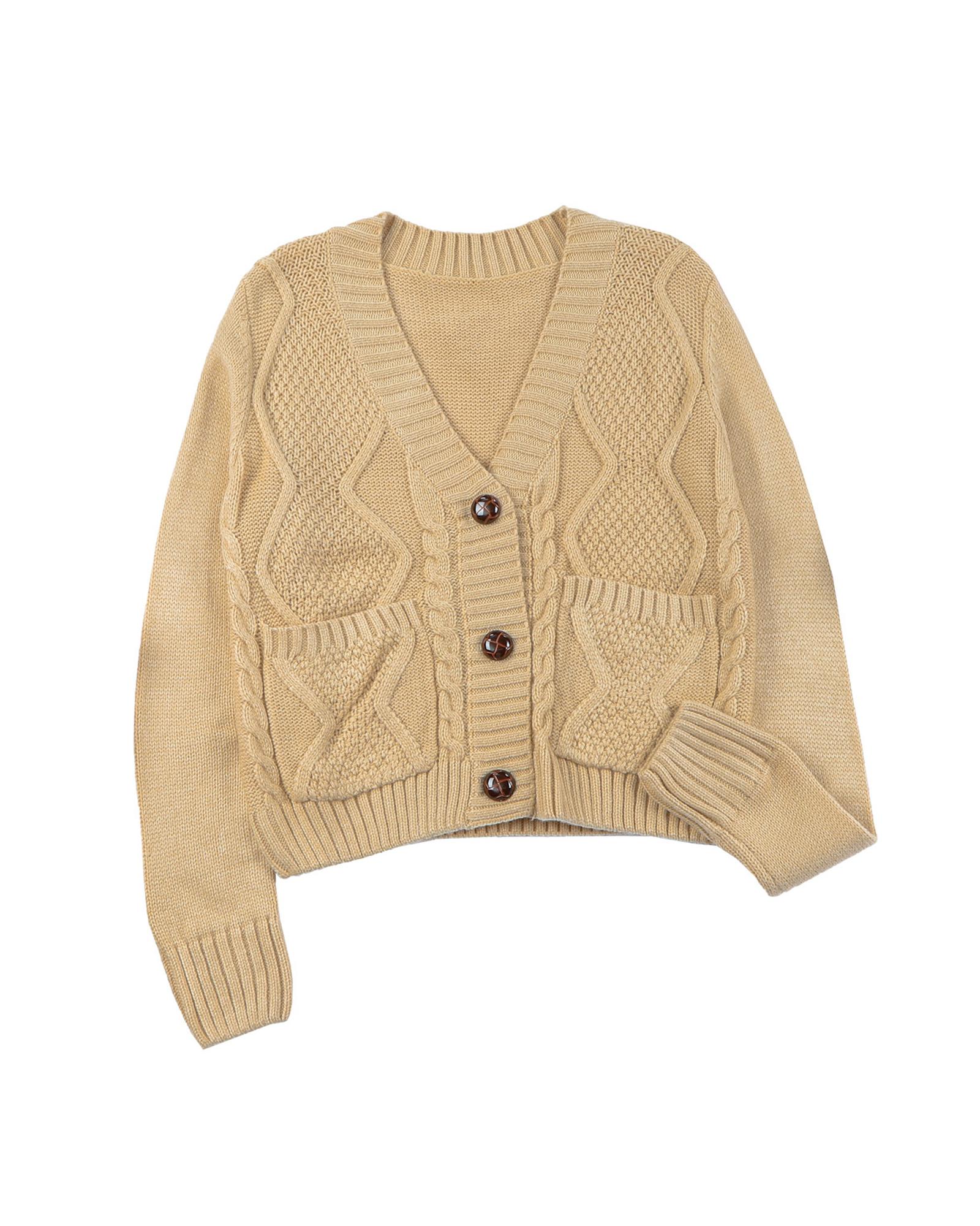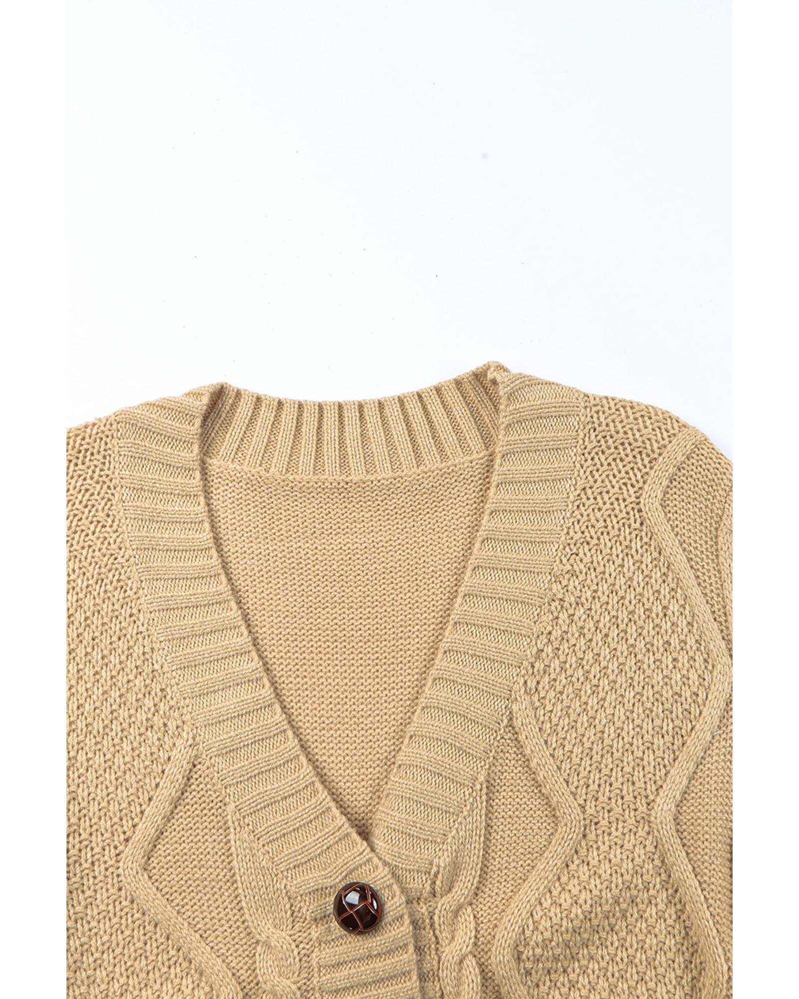 Azura Exchange Beige Front Pockets Buttons Textured Cardigan – L