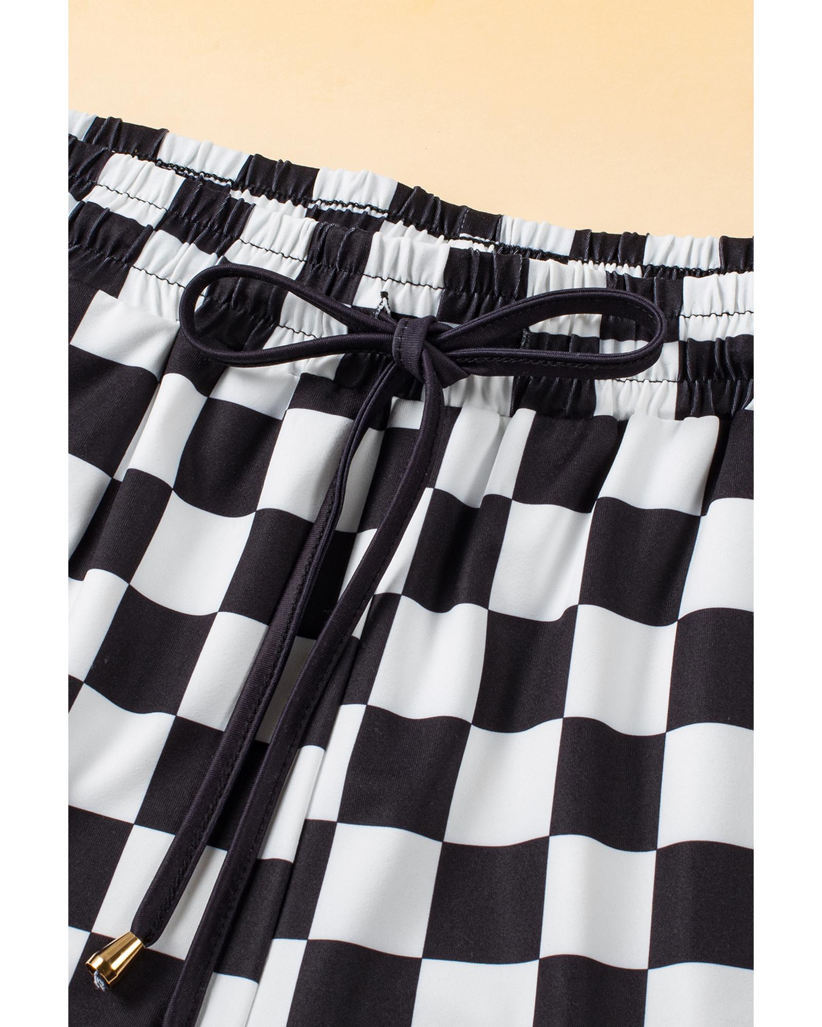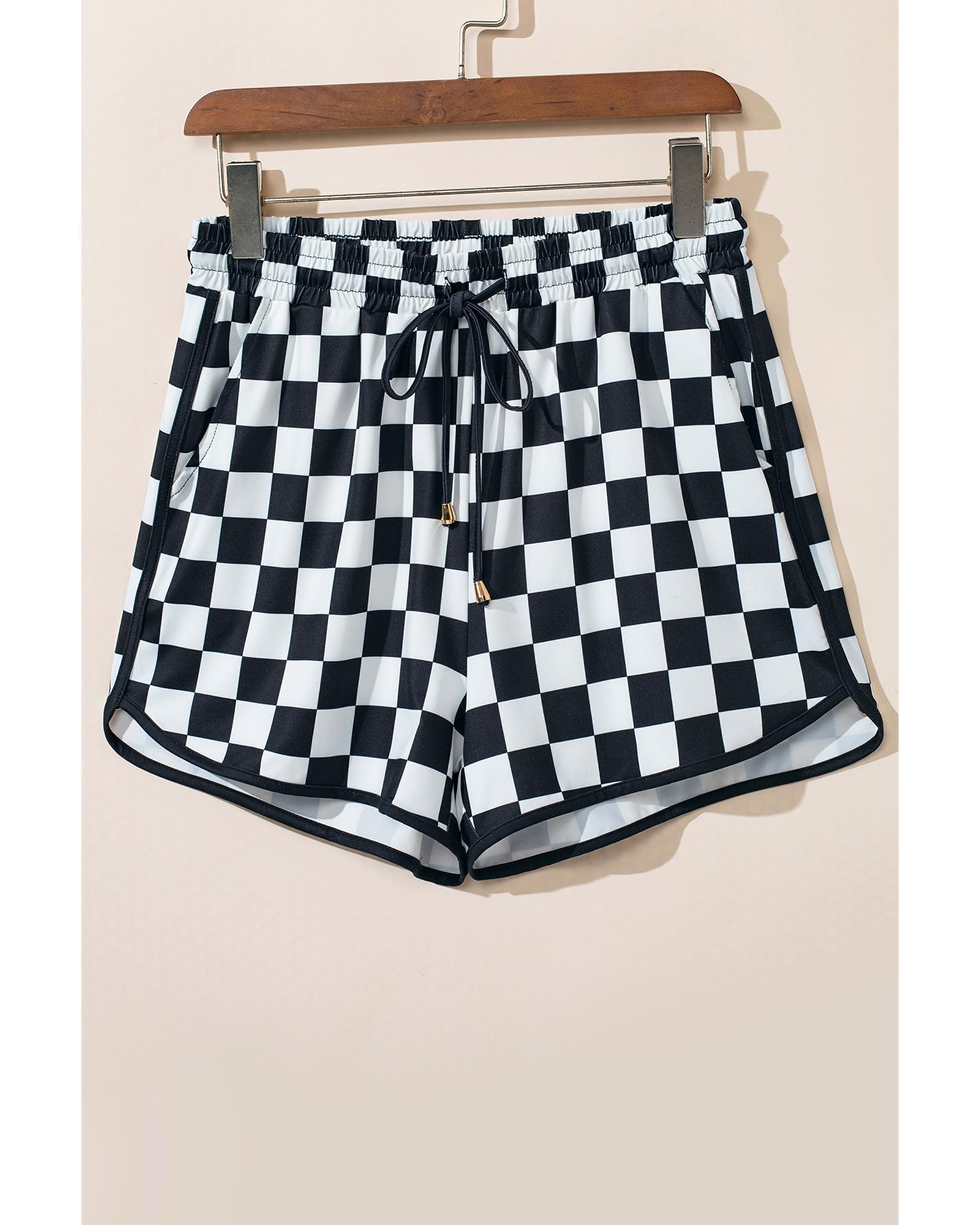 Azura Exchange Black Checkered Drawstring Elastic Waist Casual Shorts – M