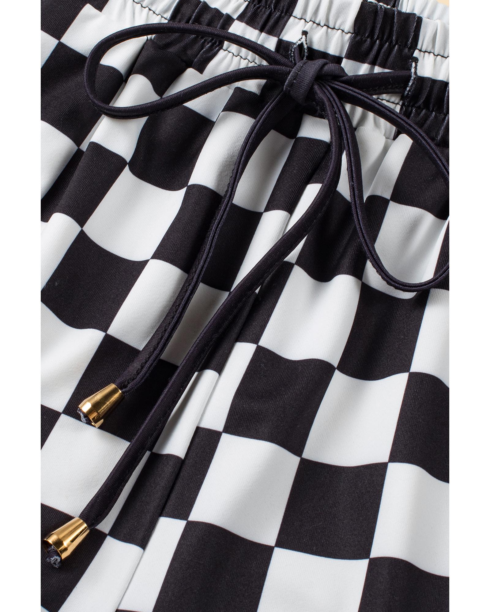 Azura Exchange Black Checkered Drawstring Elastic Waist Casual Shorts – S