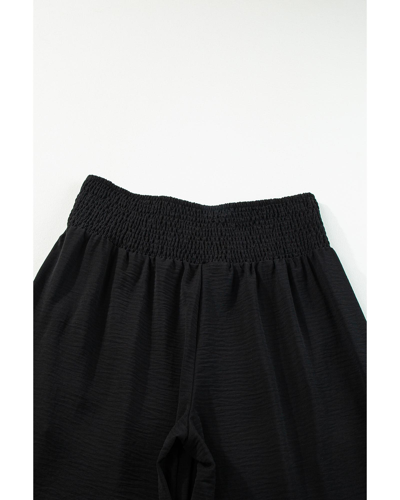 Azura Exchange Black Shirred High Waist Plus Size Wide Leg Pants - 2X