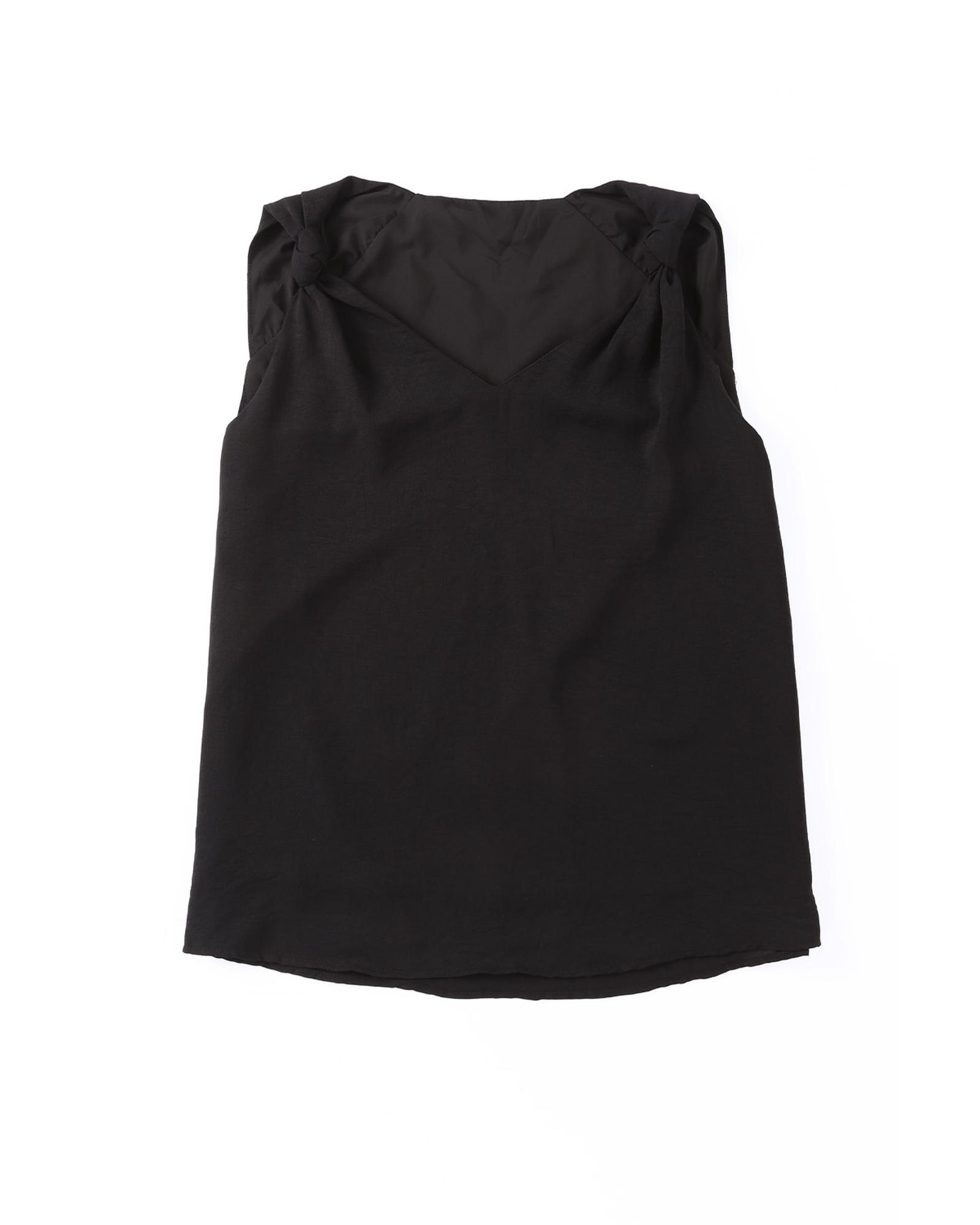 - Black V Neck Knotted Shoulder Vest