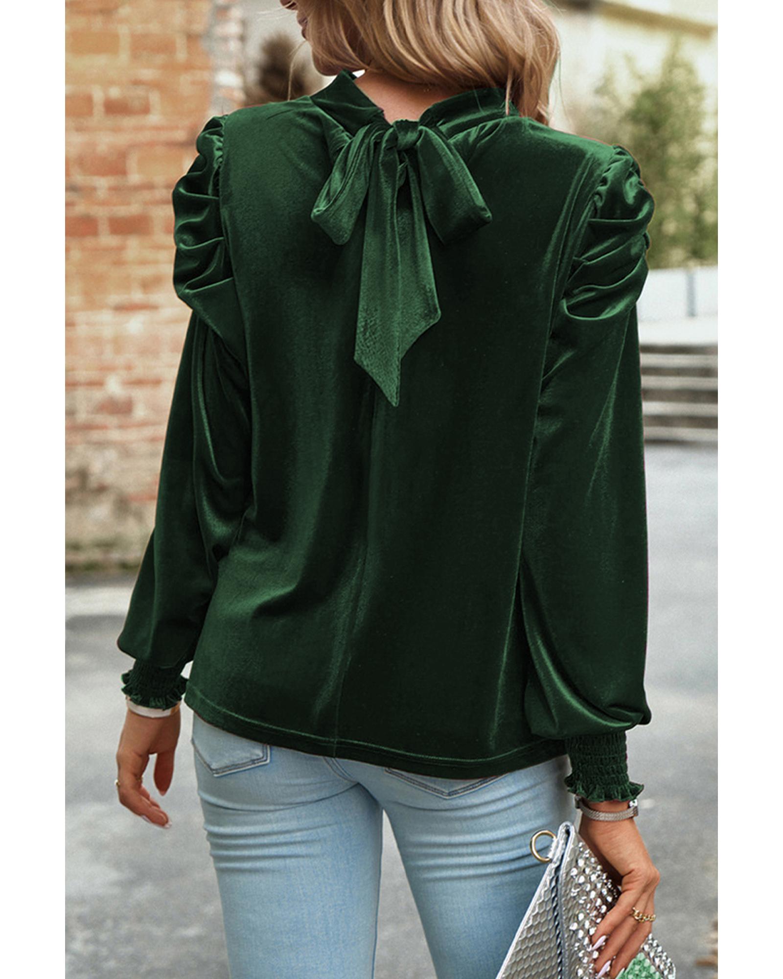 Azura Exchange Blackish Green Mock Neck Puff Sleeve Velvet Blouse – M