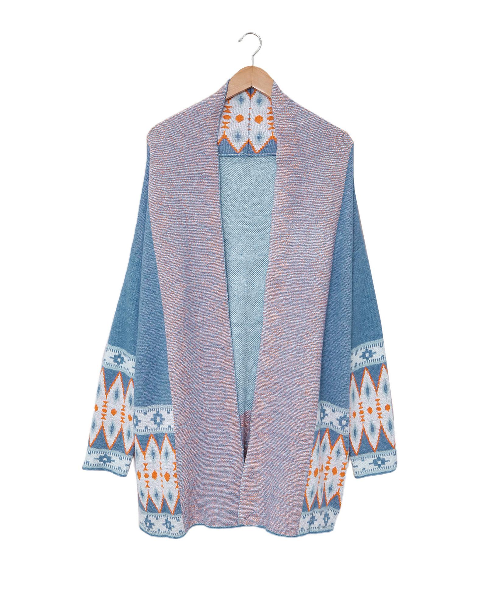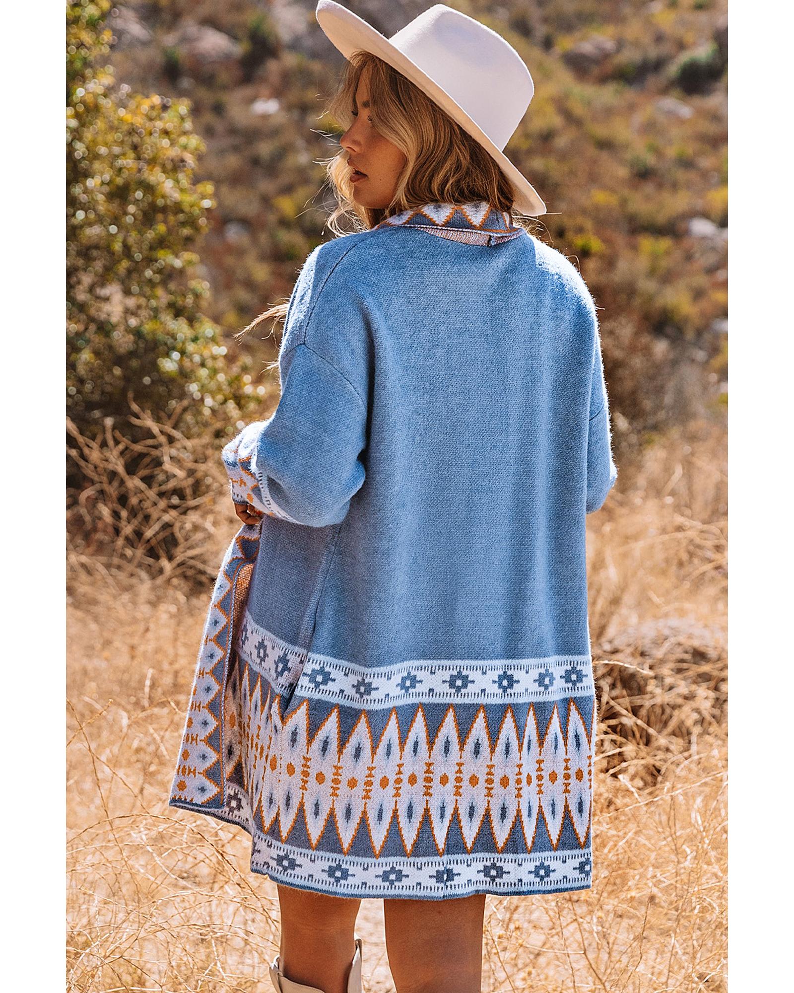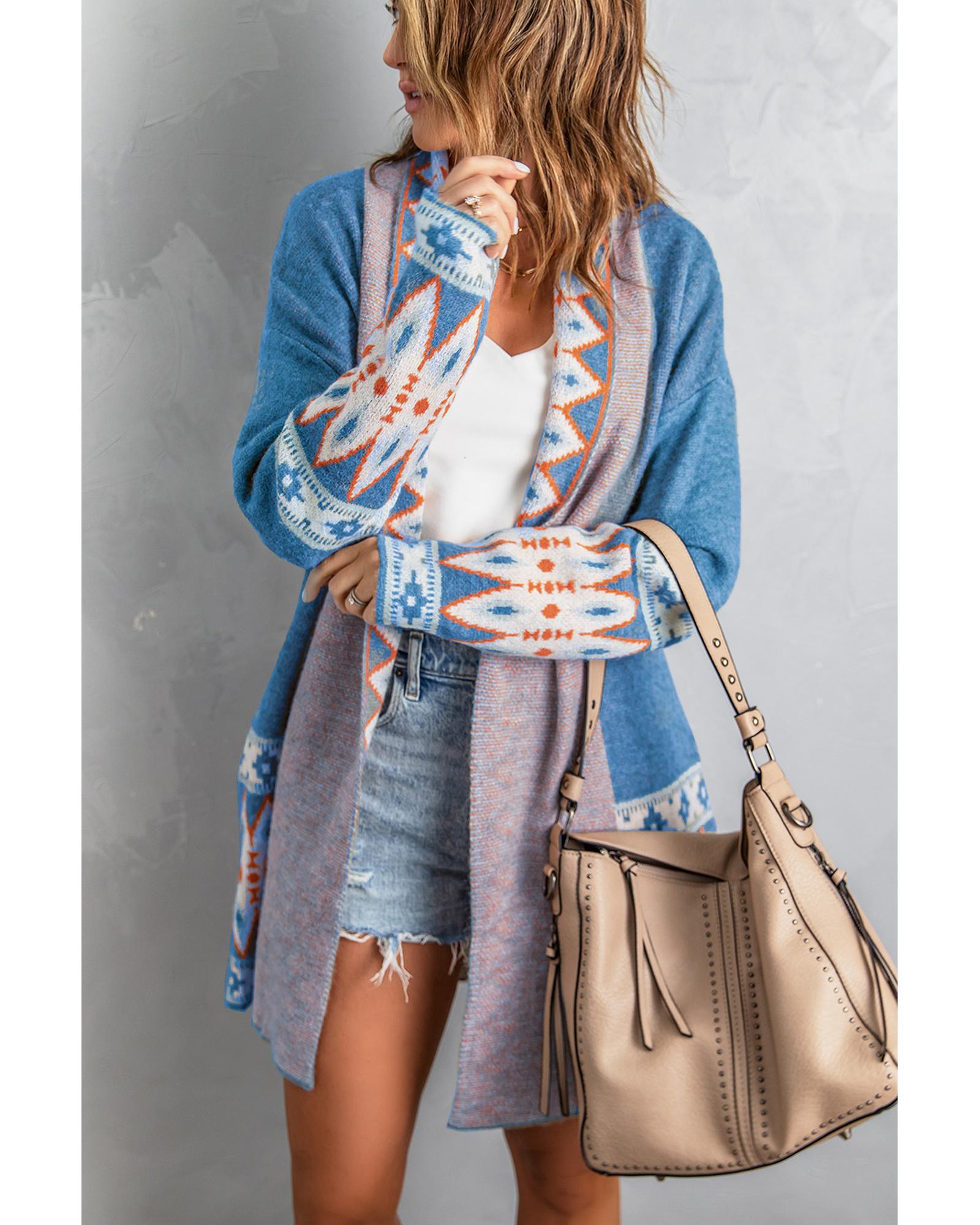 Azura Exchange Blue Aztec Print Open Front Knitted Cardigan – XL