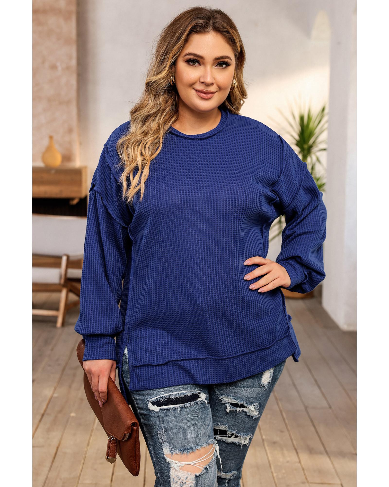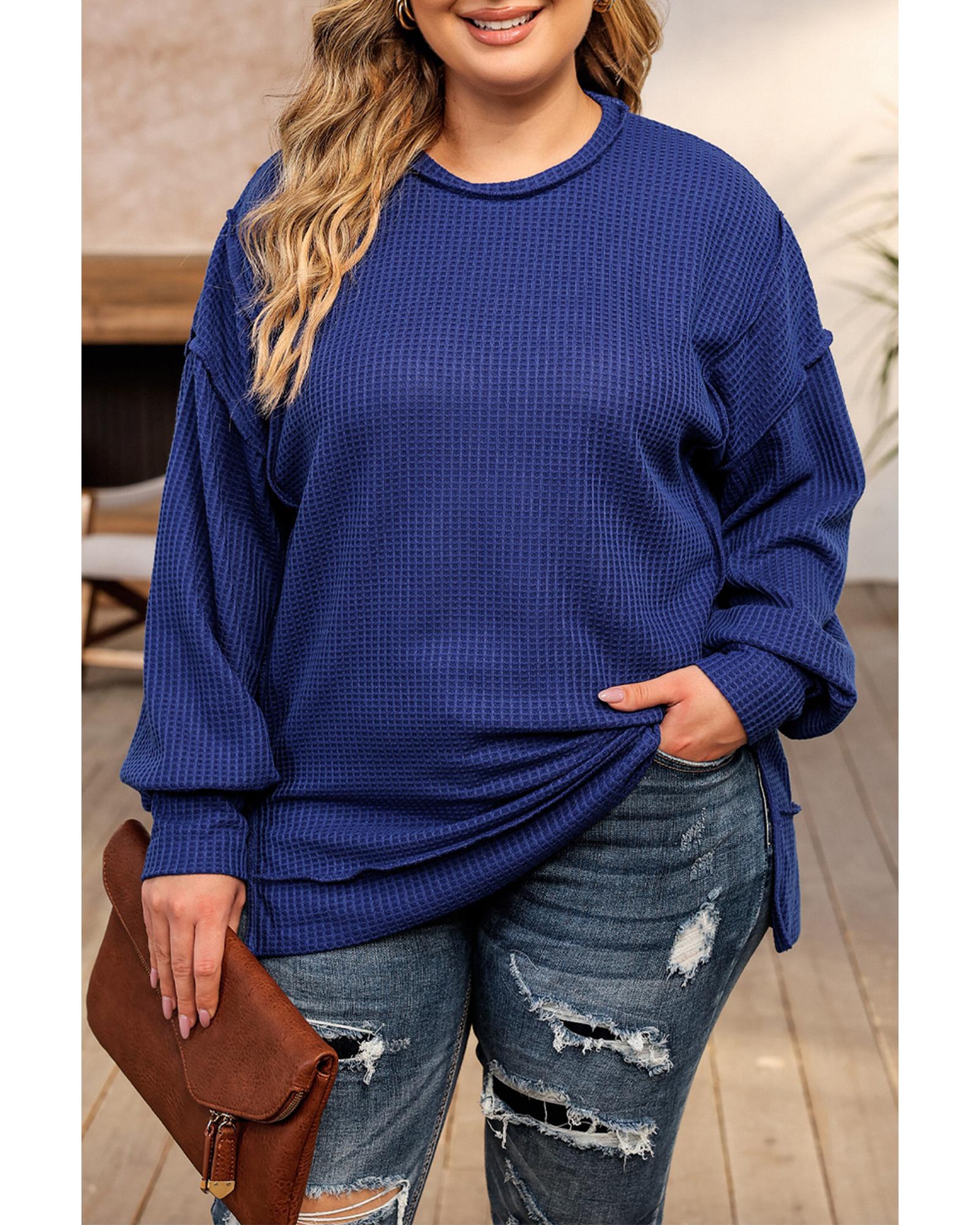 - Blue Plus Size Waffle Knit Oversized Exposed Seam Top