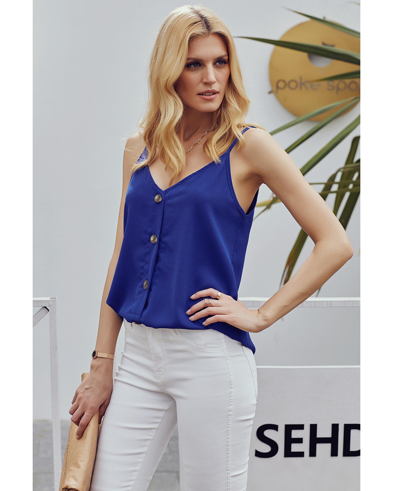 Azura Exchange Blue Spaghetti Strap Buttoned Tank Top – S