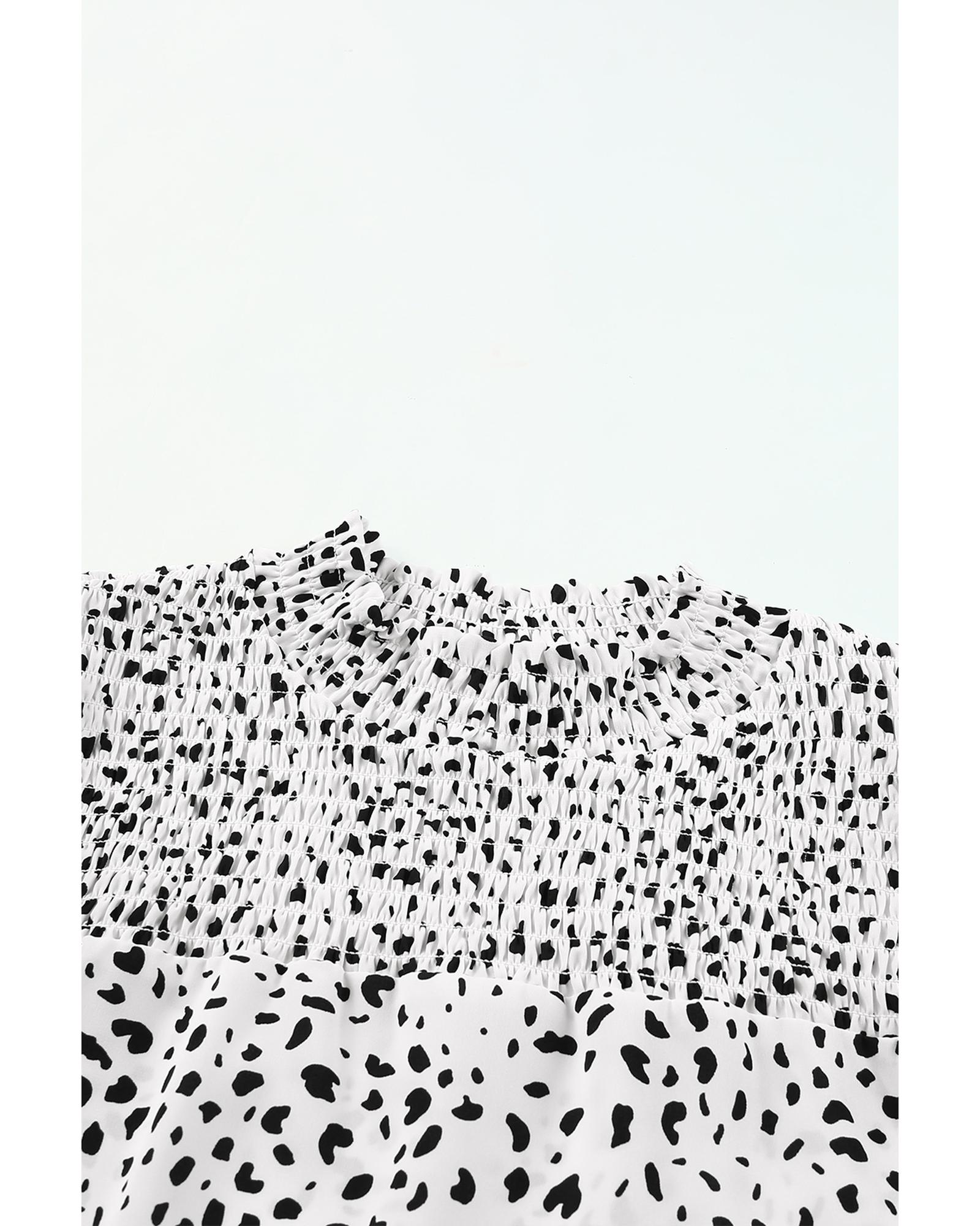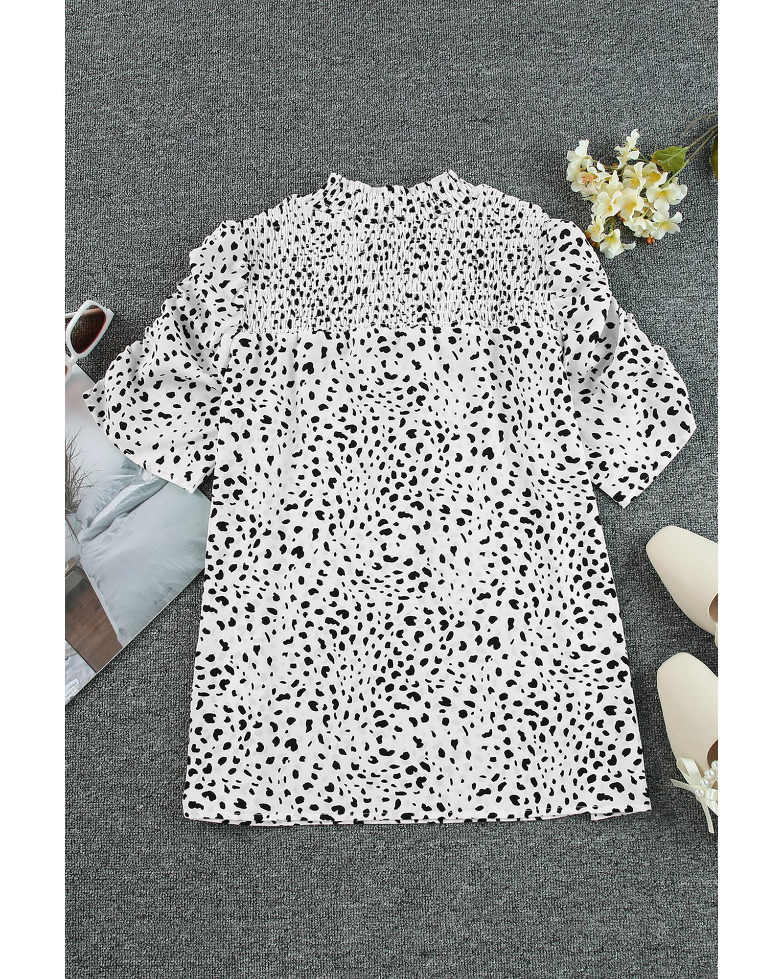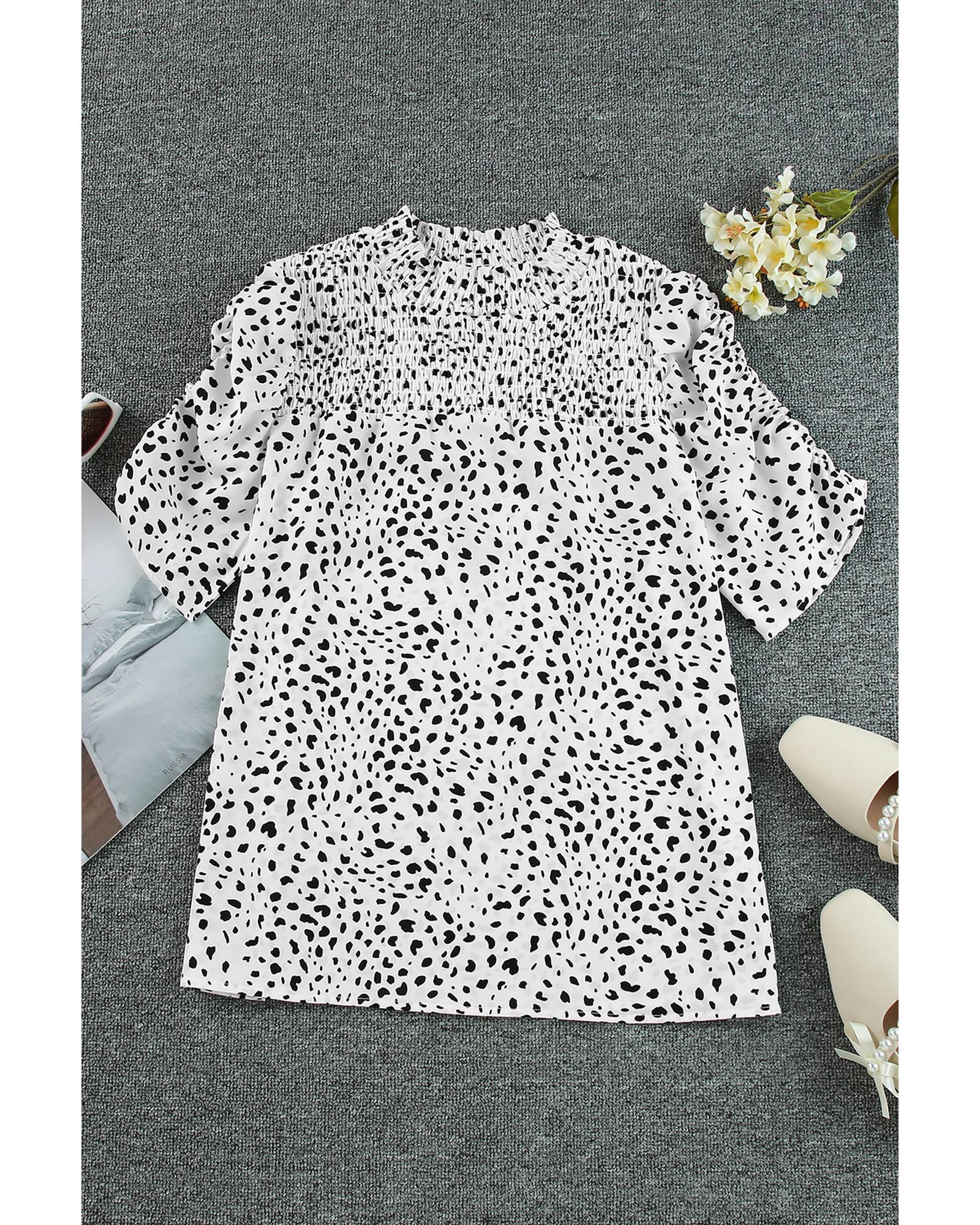 - Luxurious Smocking Detail Bubble Sleeve Blouse