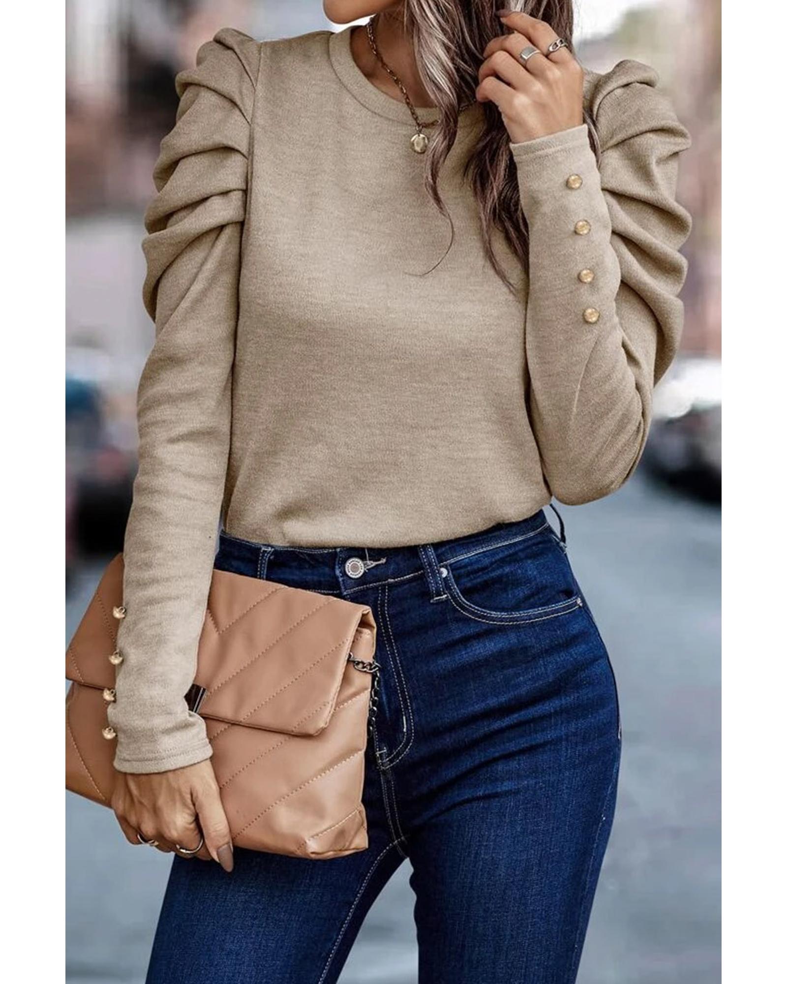 Azura Exchange Buttoned Puff Long Sleeve Sheath Top – L