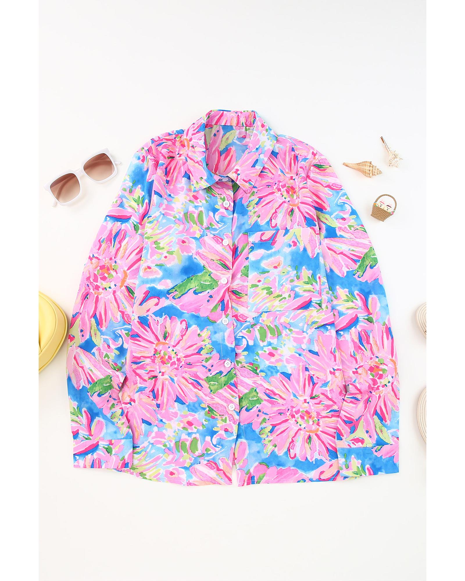 Azura Exchange Buttoned Sheath Long Sleeve Shirt with Abstract Floral Print - XL