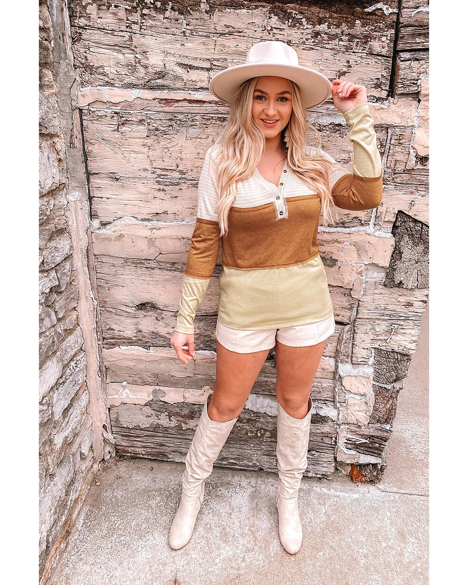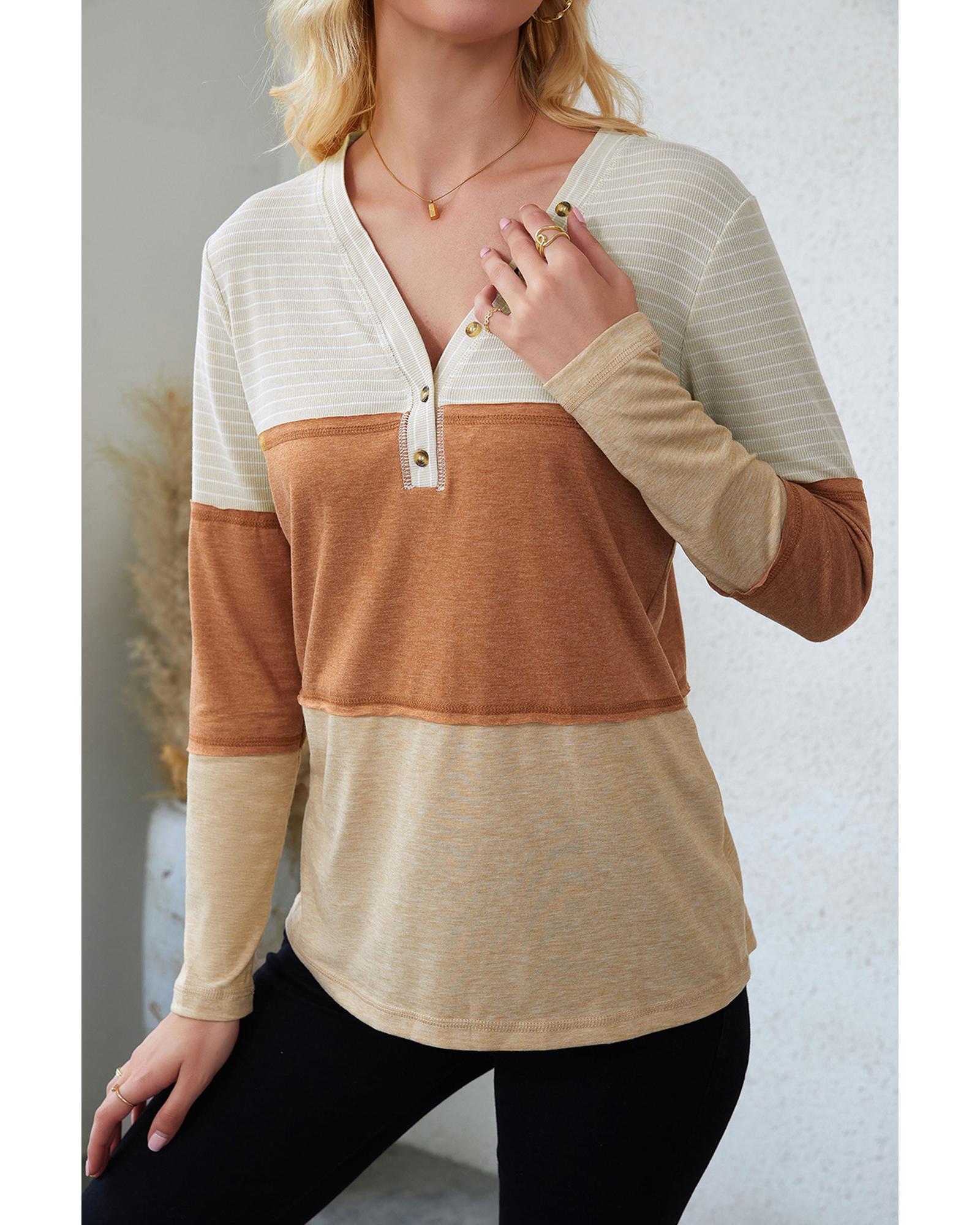 Azura Exchange Buttoned Waffle Knit Long Sleeve Top - L