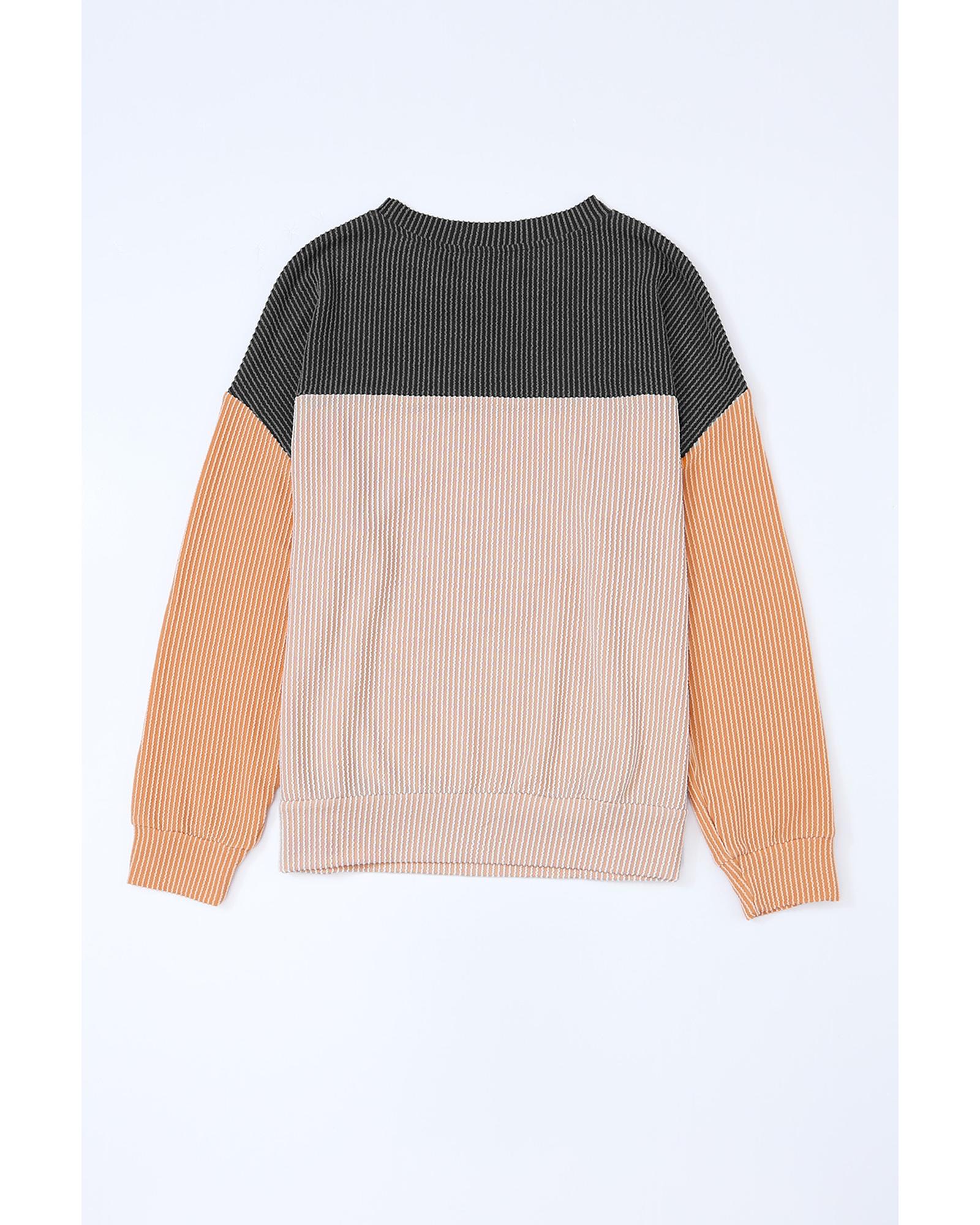 Azura Exchange Color Block Long Sleeve Ribbed Loose Top - L