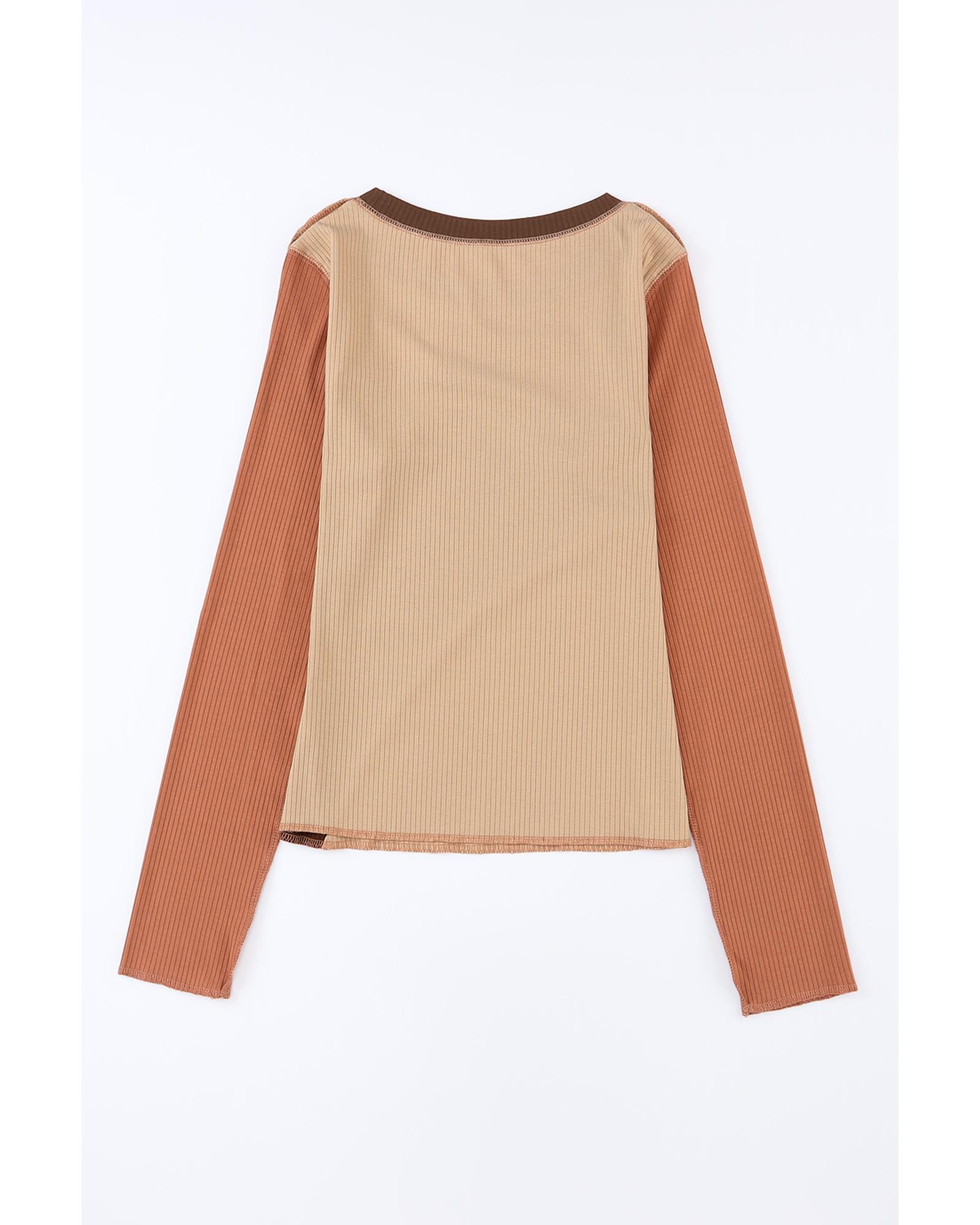 - Expose Seam Color Block Ribbed Knit Top