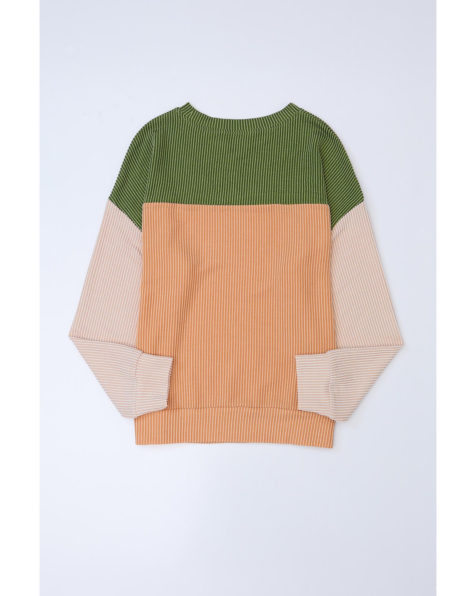 Azura Exchange Color Block Ribbed Long Sleeve Top – S