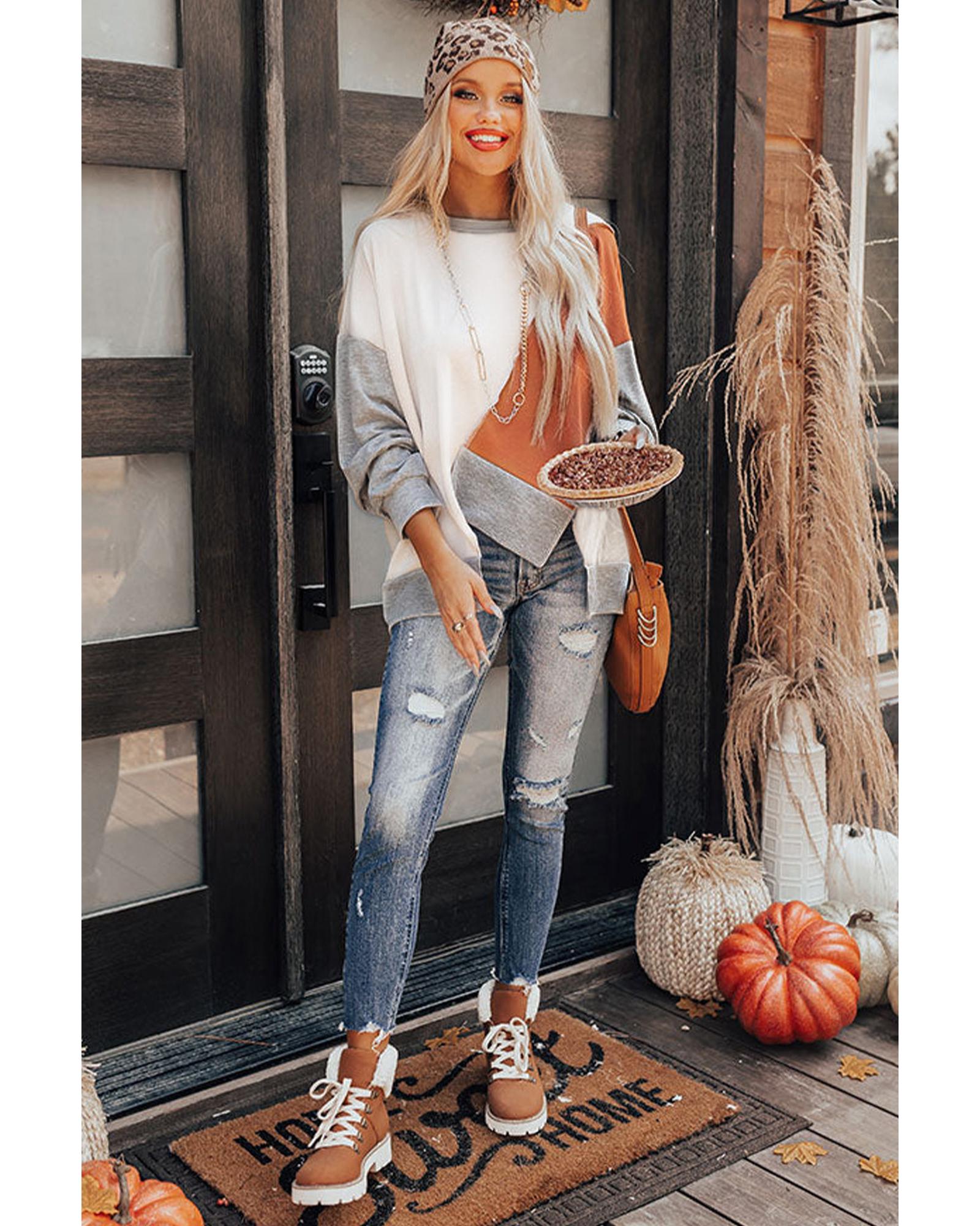 Azura Exchange Colorblock Stitching Irregular Hem Long Sleeve Top – L