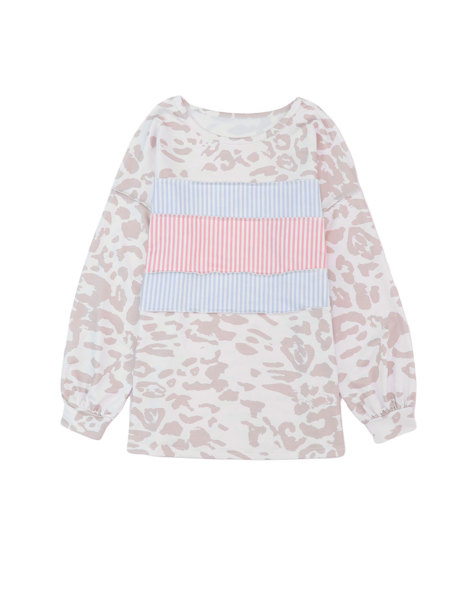 Azura Exchange Contrast Stripes Patchwork Puff Sleeve Knit Top - S