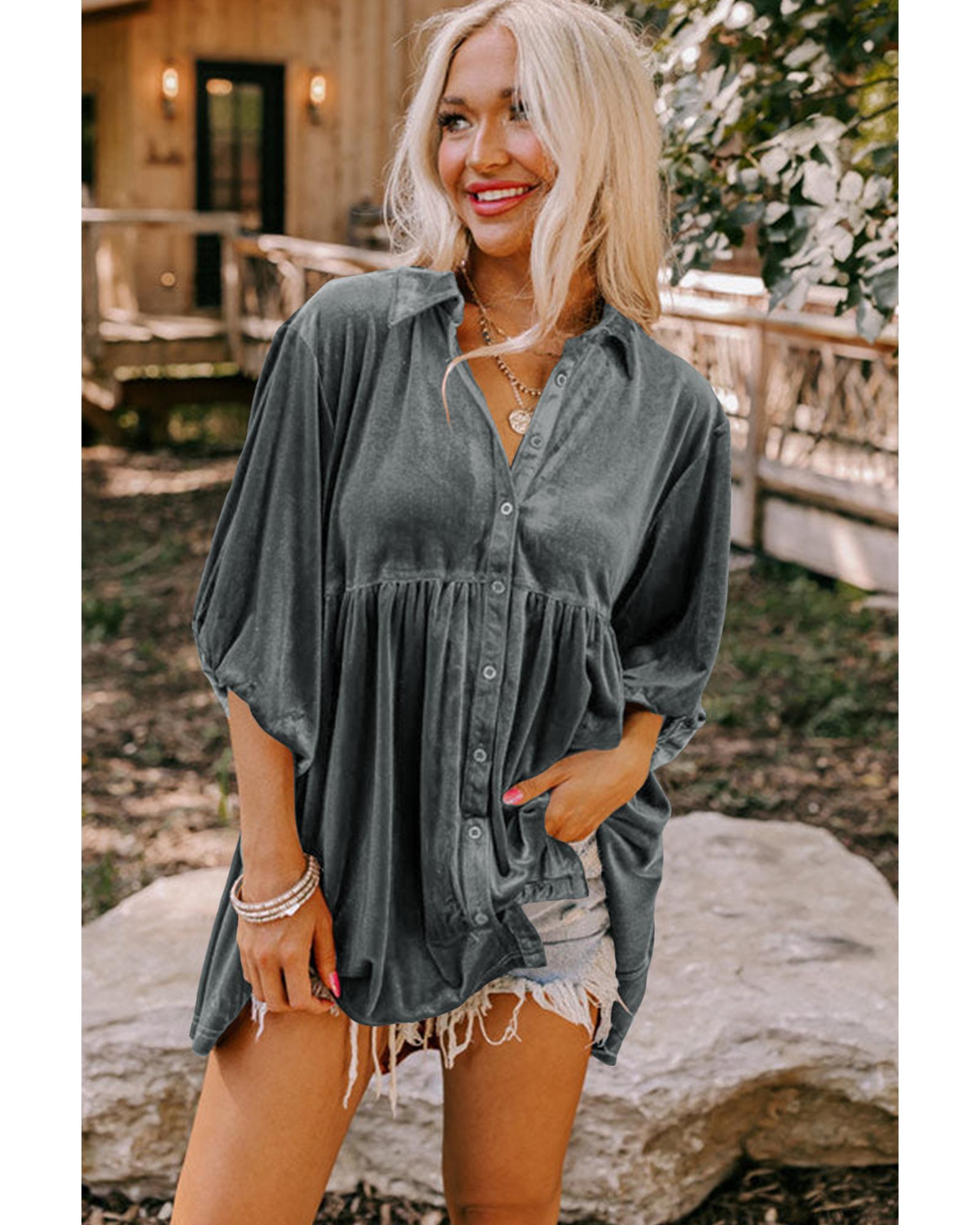 Azura Exchange Dark Grey 3/4 Sleeve Tunic Babydoll Velvet Shirt - M