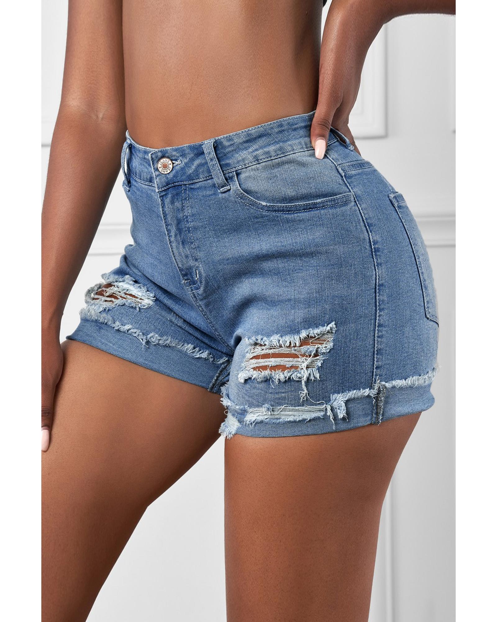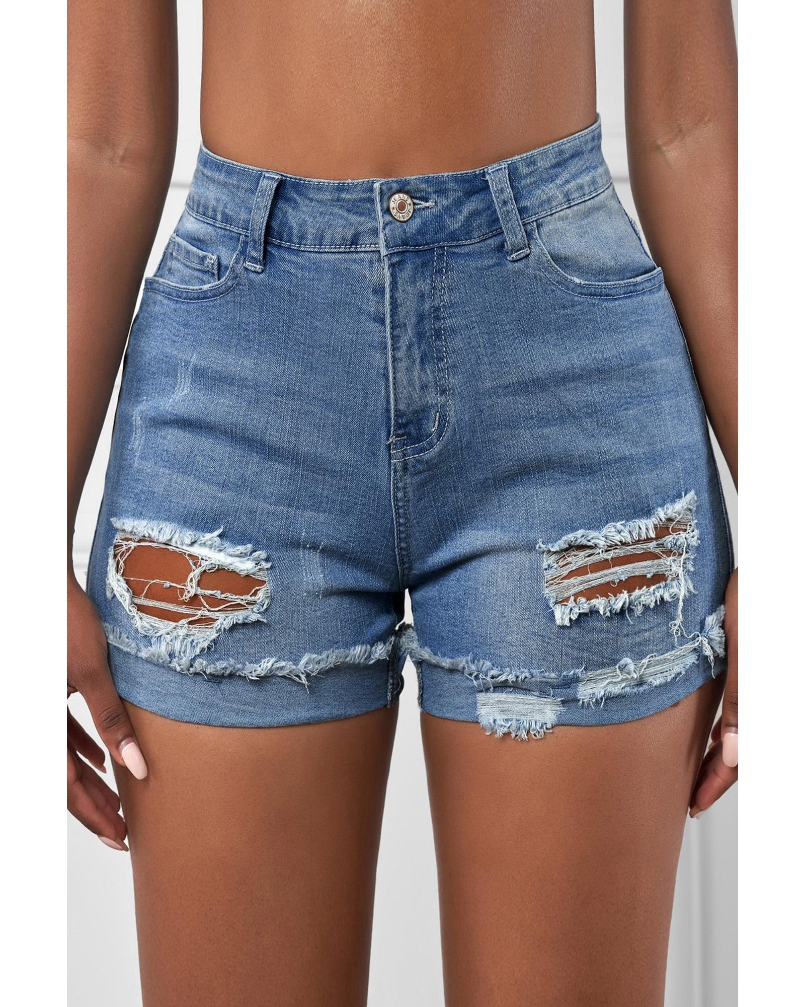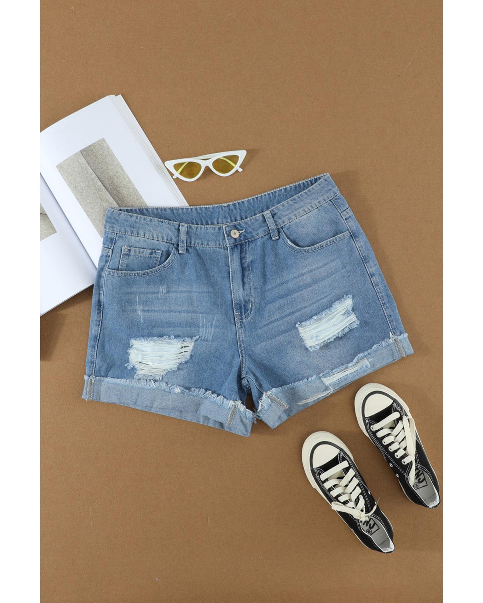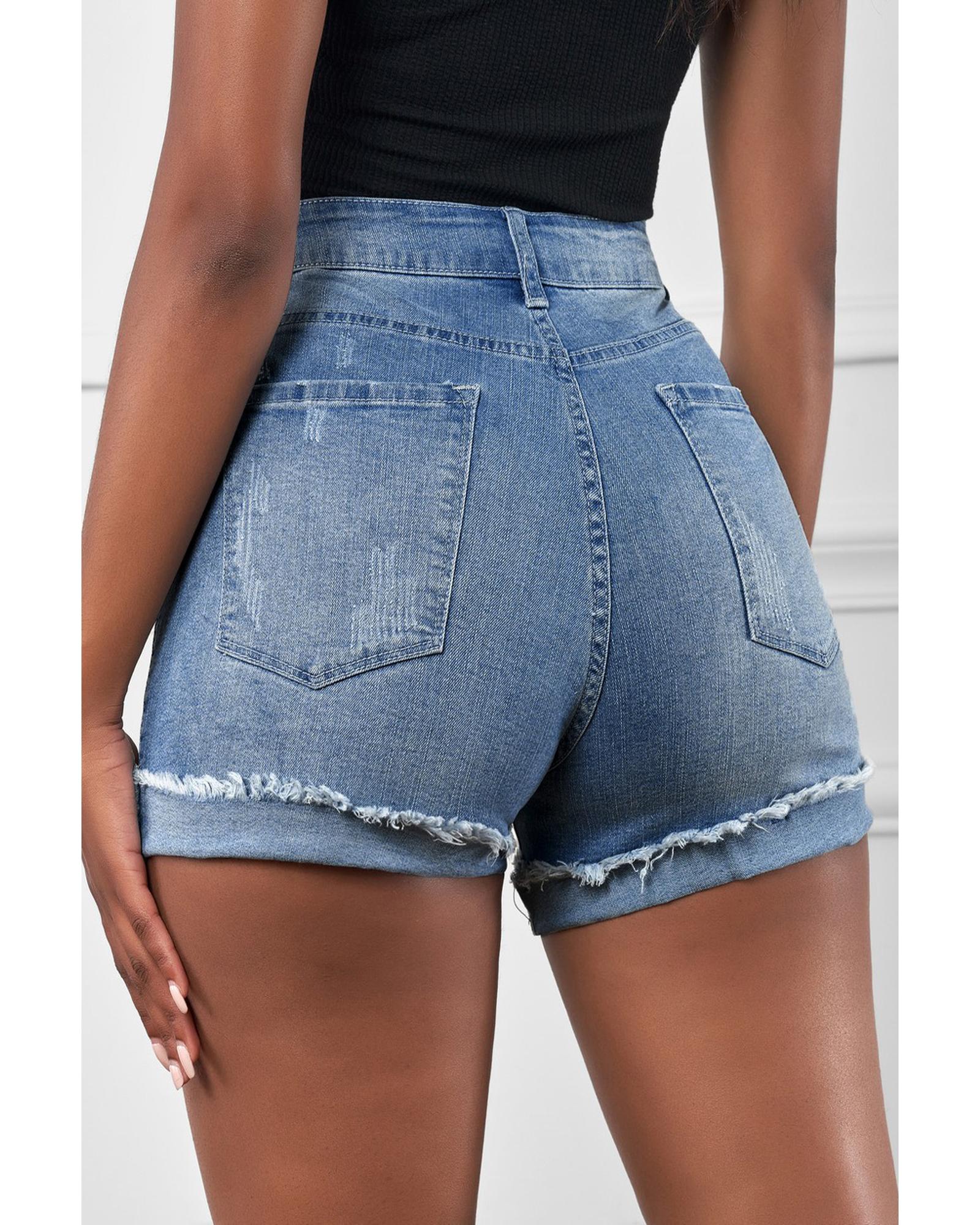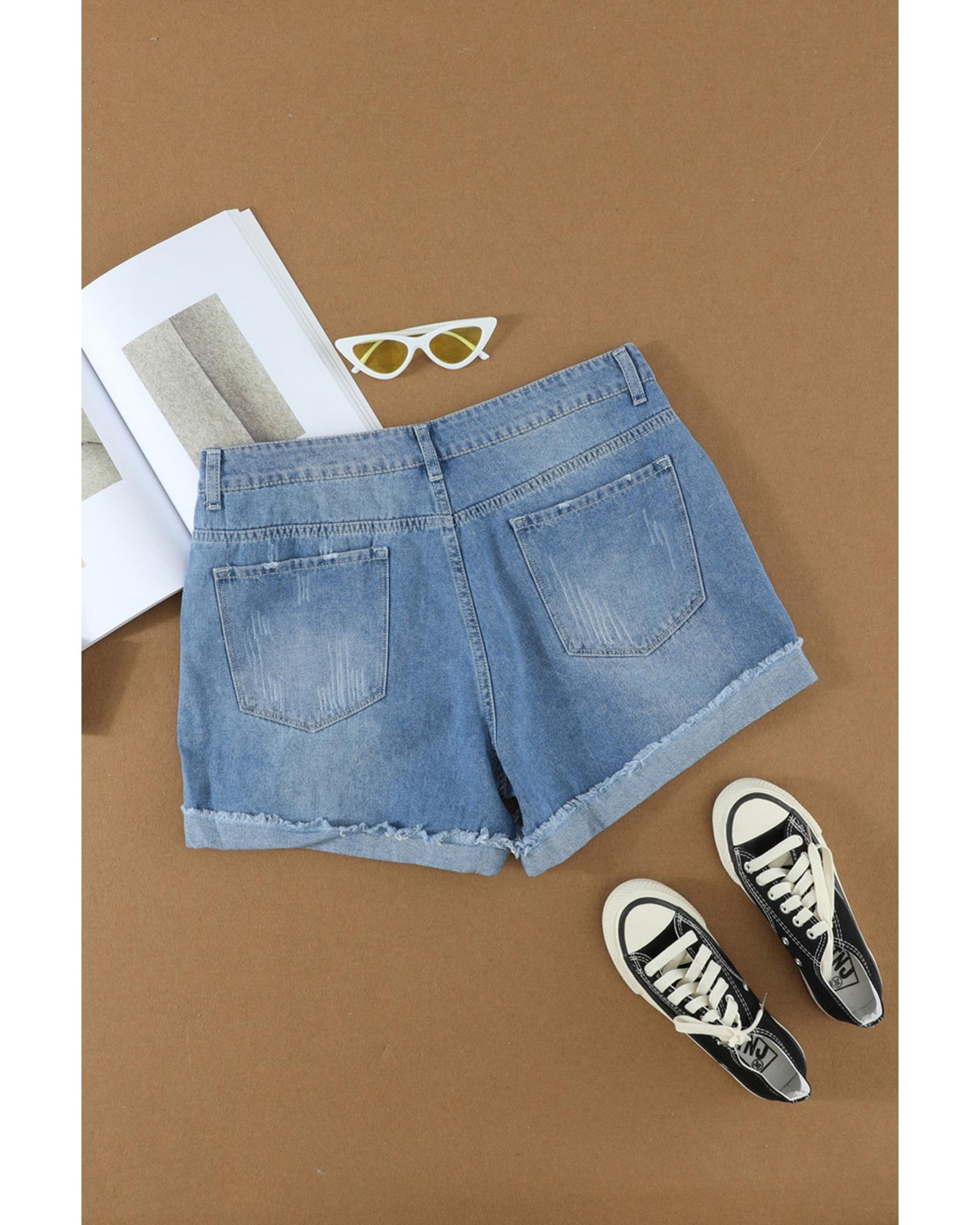 Azura Exchange Distressed Ripped Rolled Hem Sky Blue Denim Shorts – S