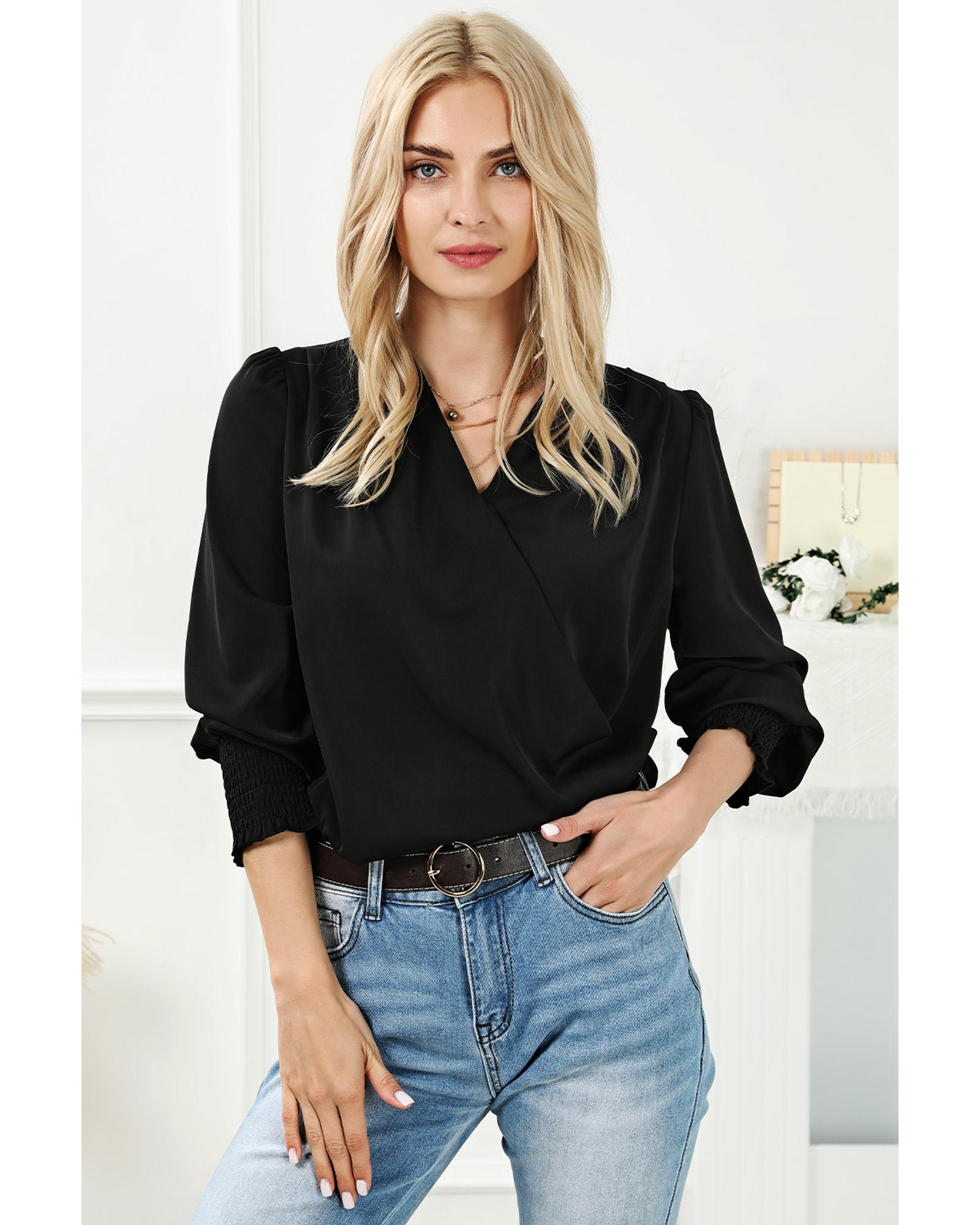 Azura Exchange Elegant Surplice Neck Draped Blouse – M