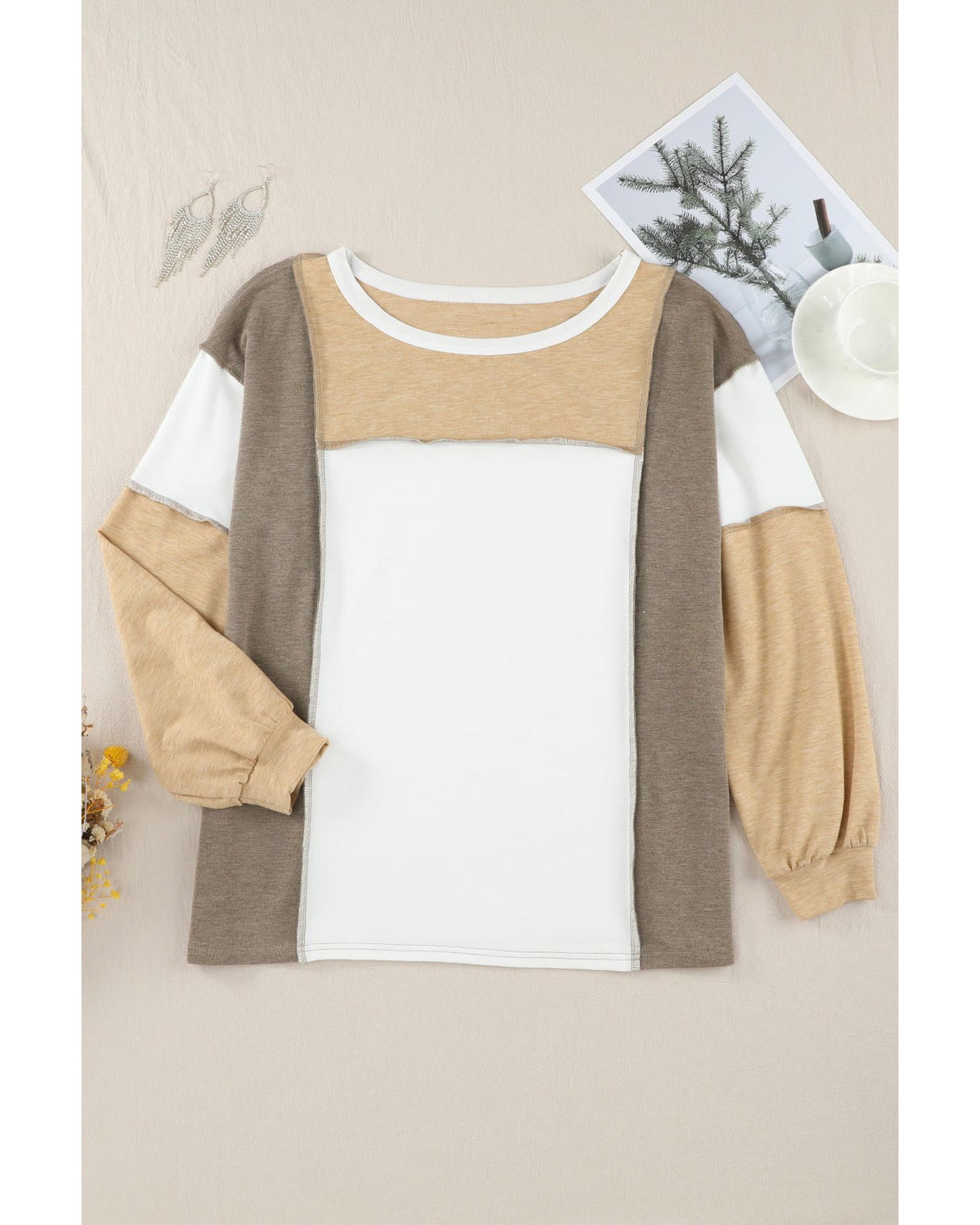 - Stylish and trendy Khaki Exposed Seam Color Block Patchwork Top