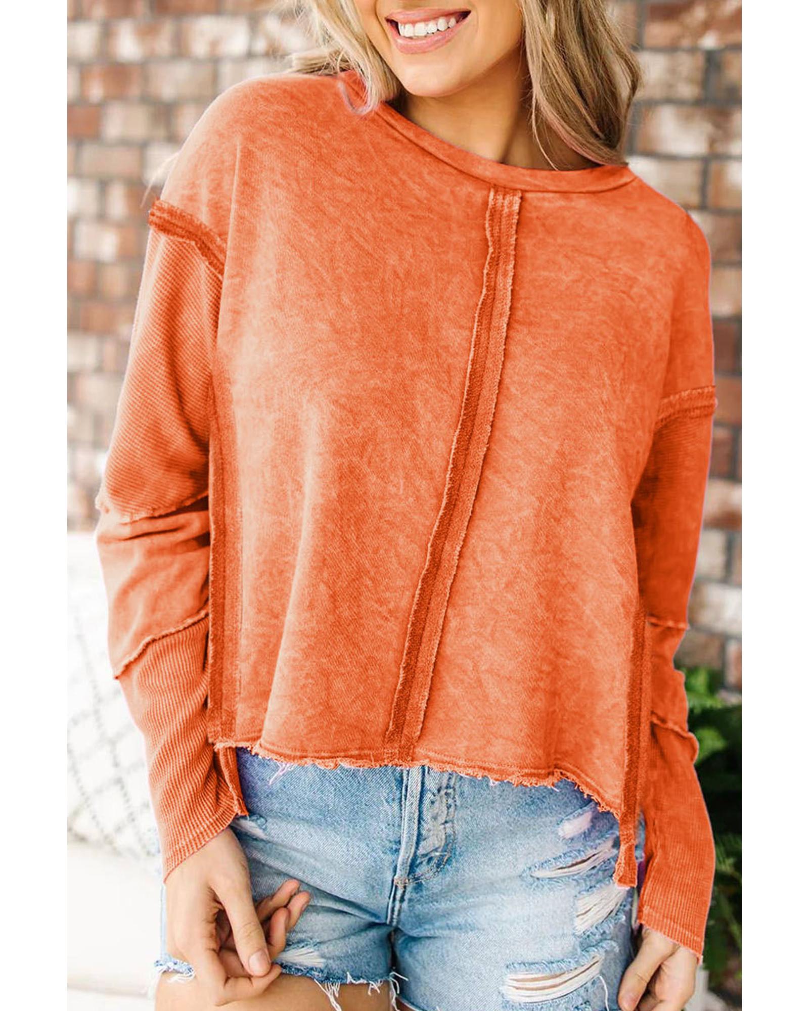 Azura Exchange Exposed Seamed High Low Raw Edge Sweatshirt – L