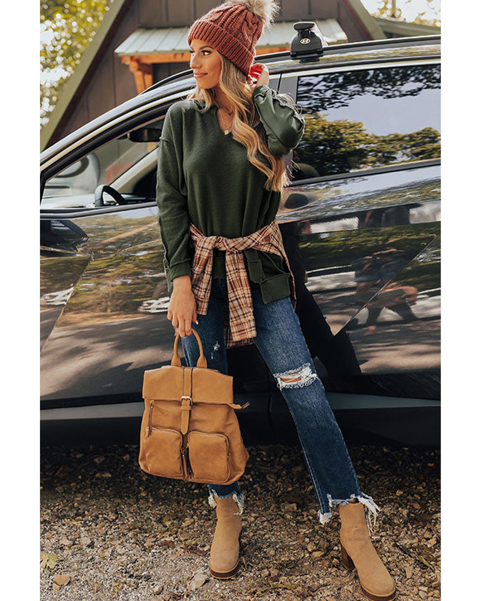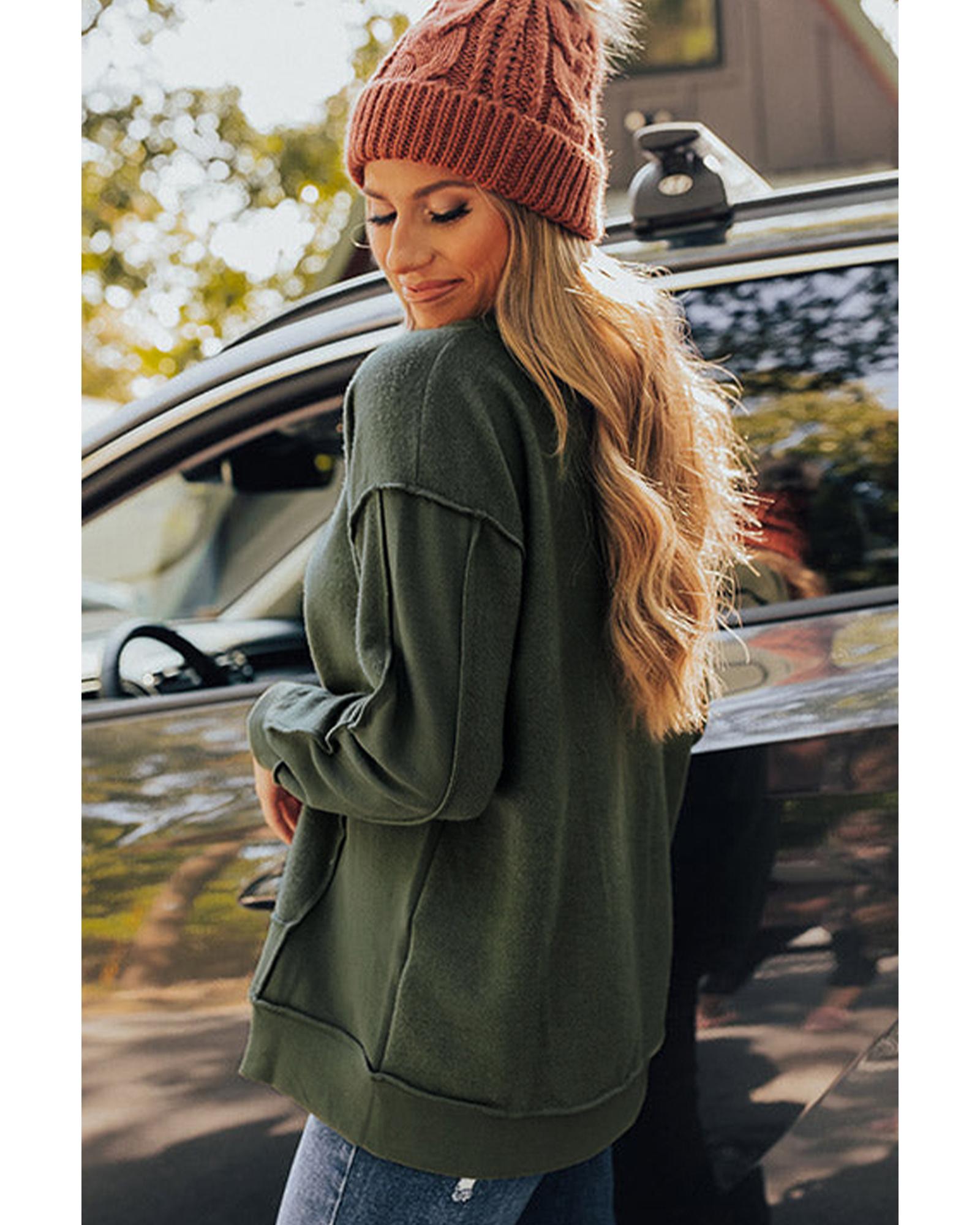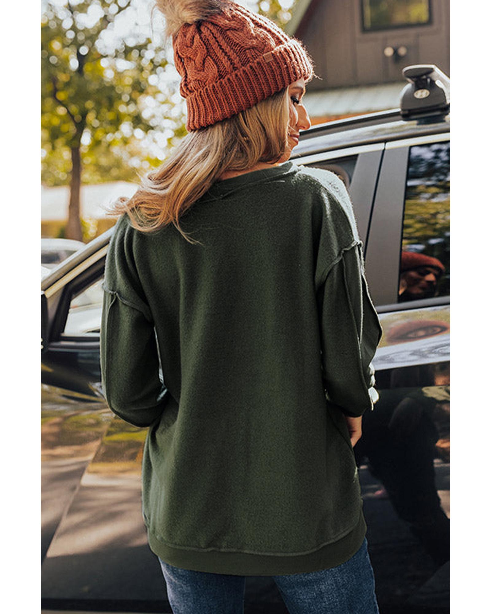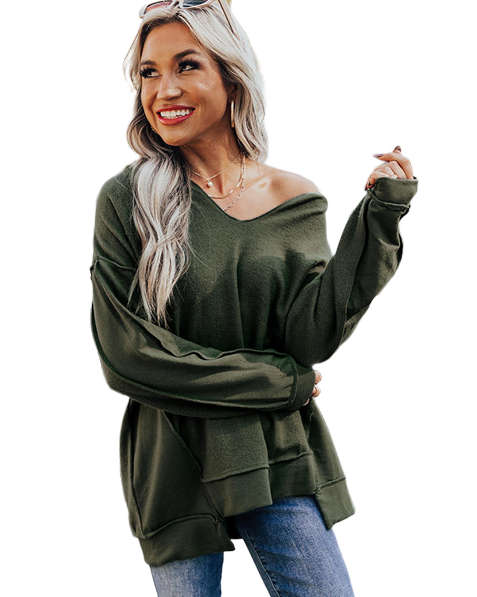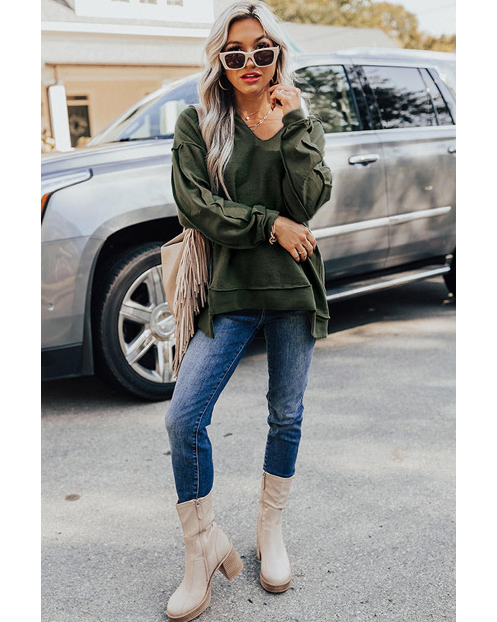 Azura Exchange Exquisite Green Long Sleeve Top with Split Neck and Exposed Seam Detail – M