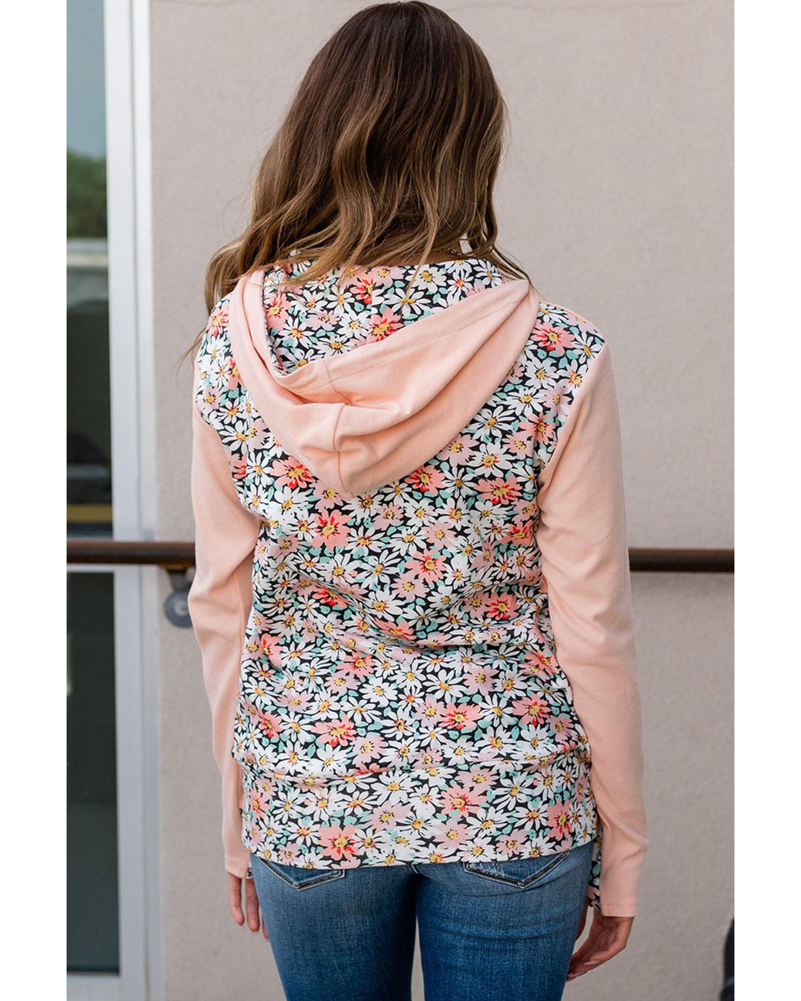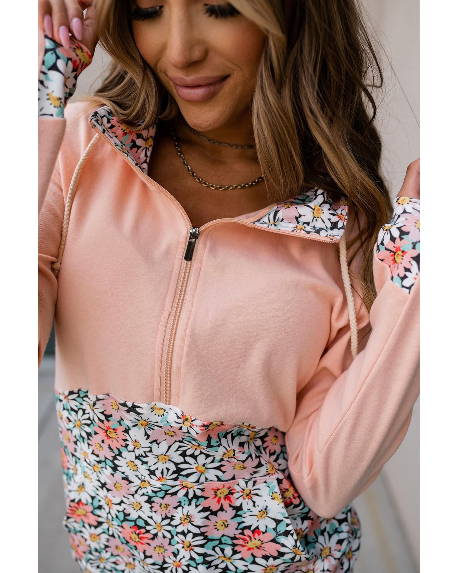Azura Exchange Floral Patch Half Zip Kangaroo Pocket Hoodie - S