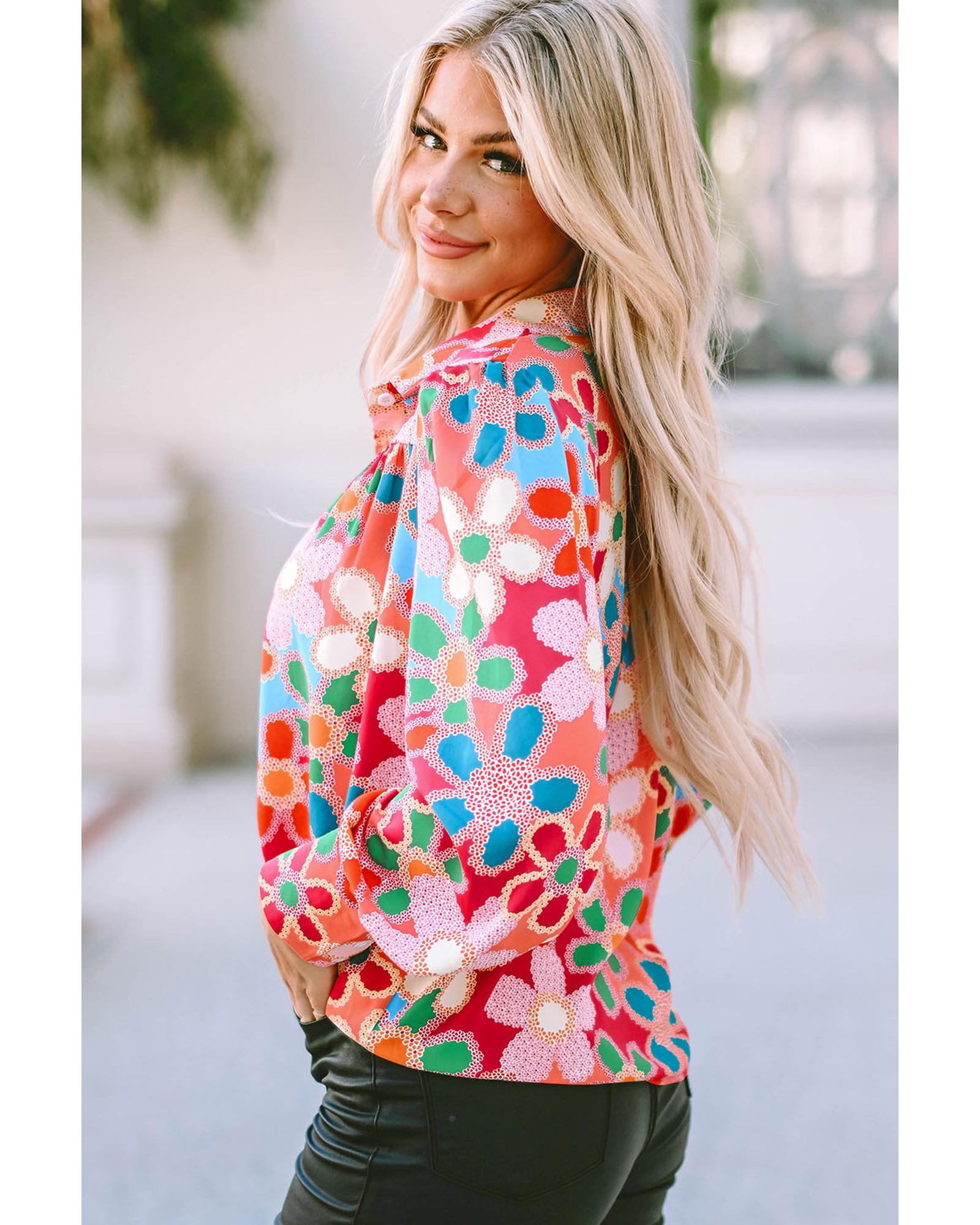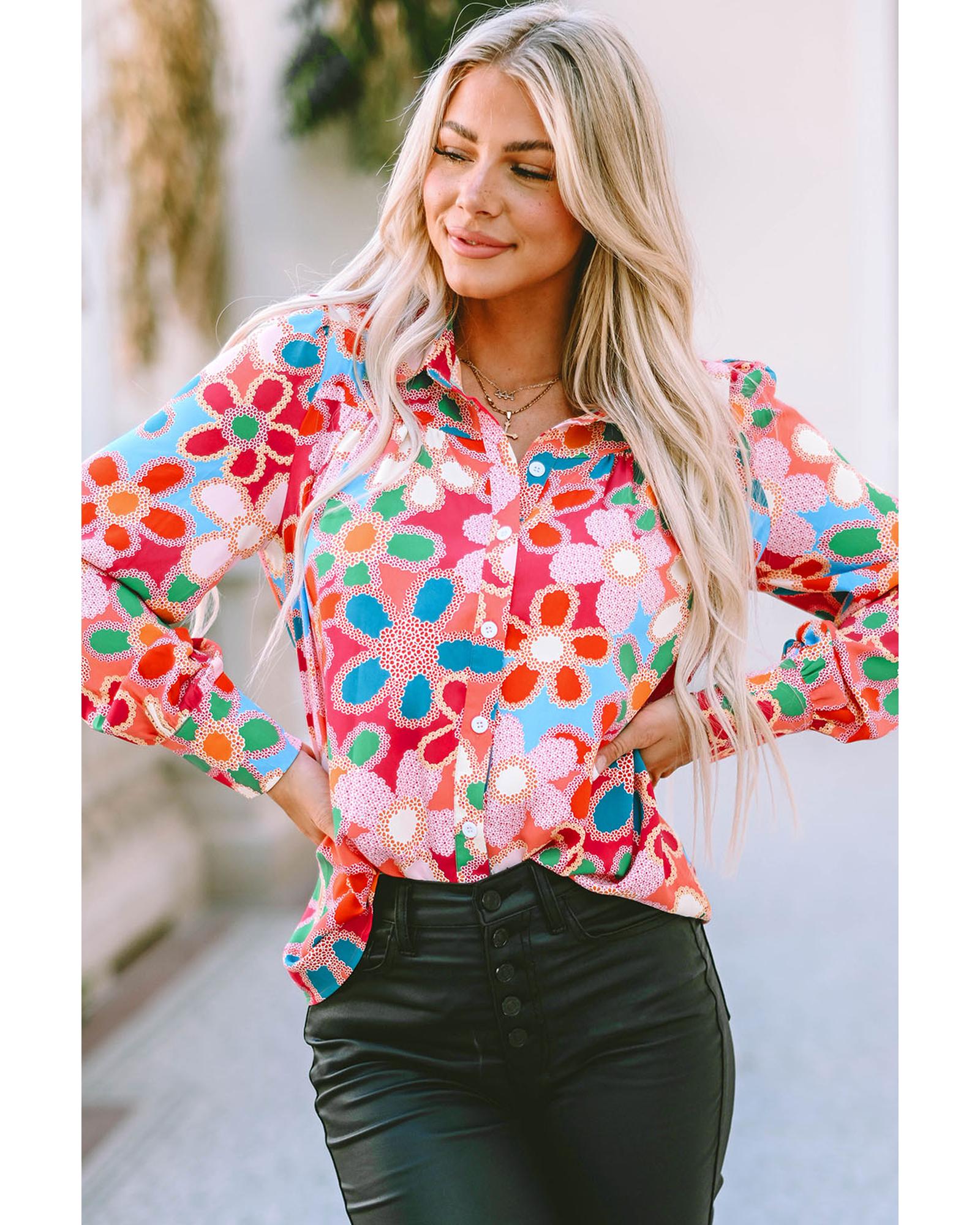 Azura Exchange Floral Print Bubble Sleeve Shirt – L