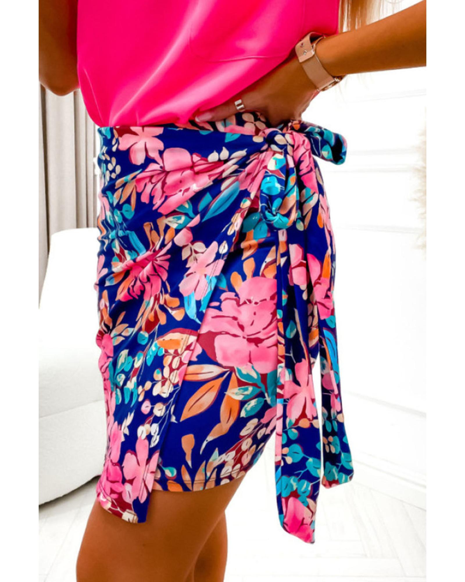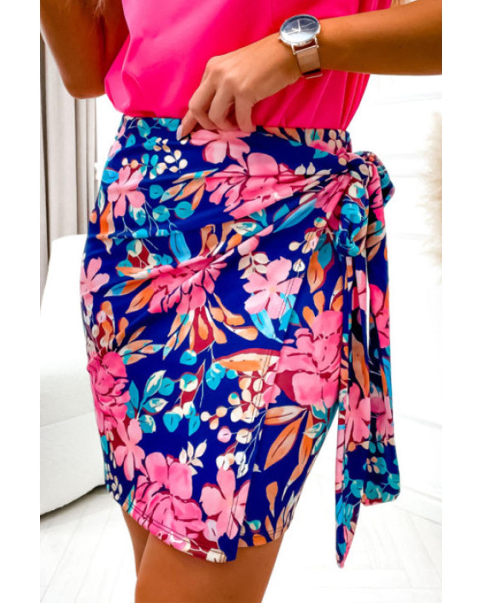 Azura Exchange Floral Print Lace-up Bodycon Mini Skirt - S