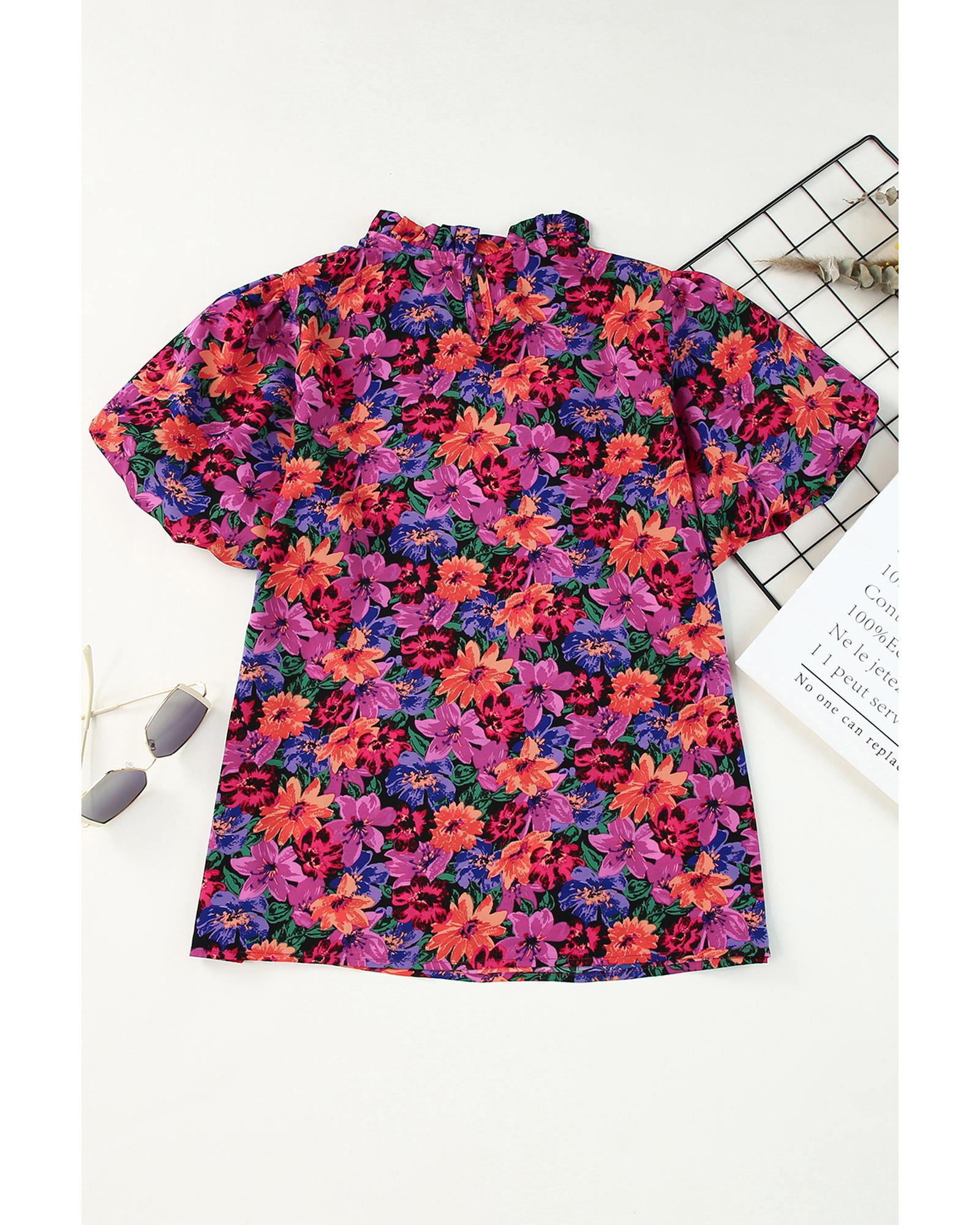 Azura Exchange Floral Print Puff Sleeve Blouse – XL