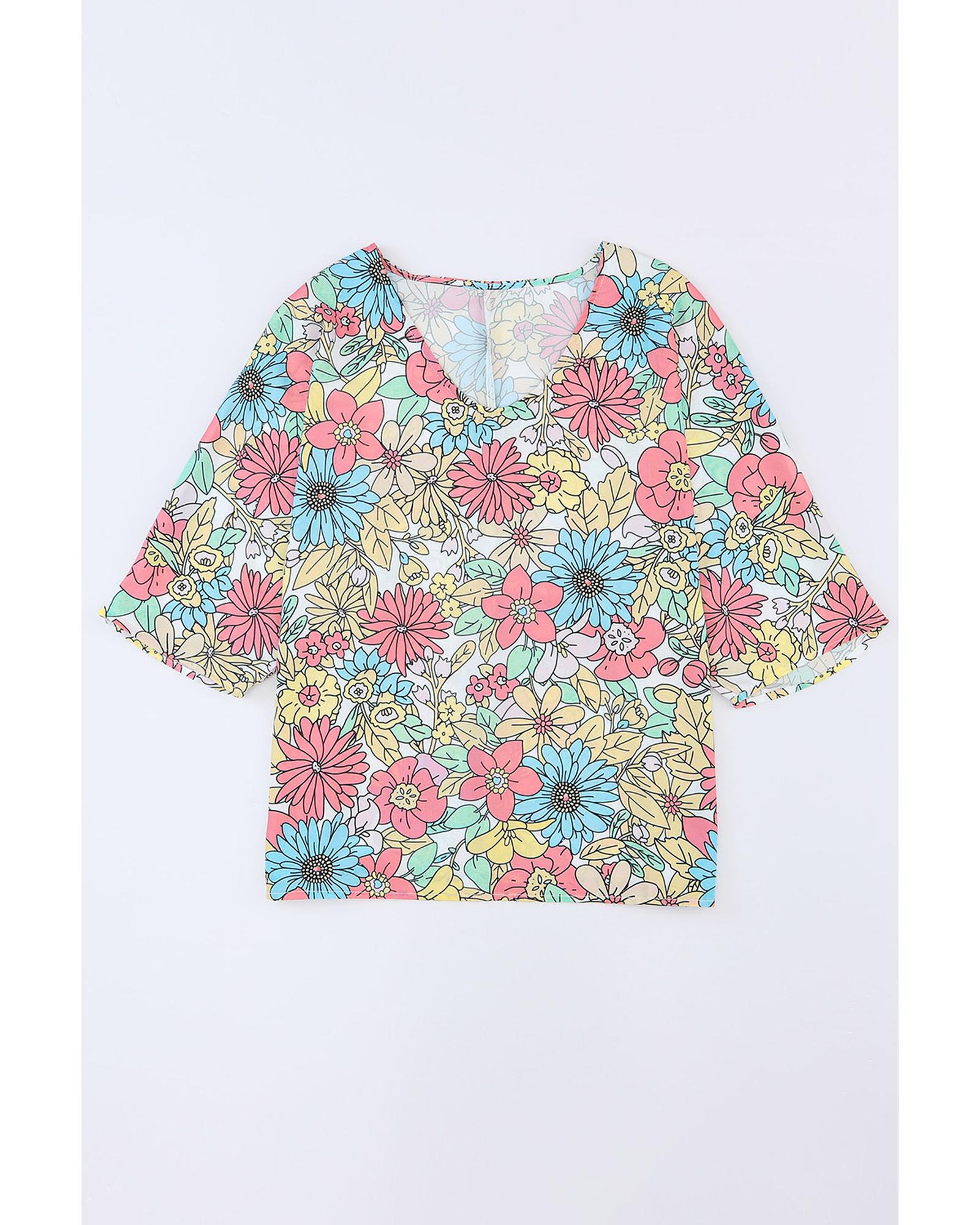 Azura Exchange Floral Print V Neck Half Sleeve Blouse – M