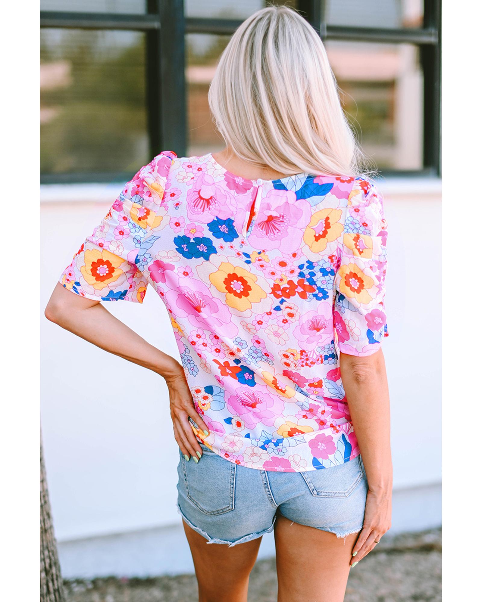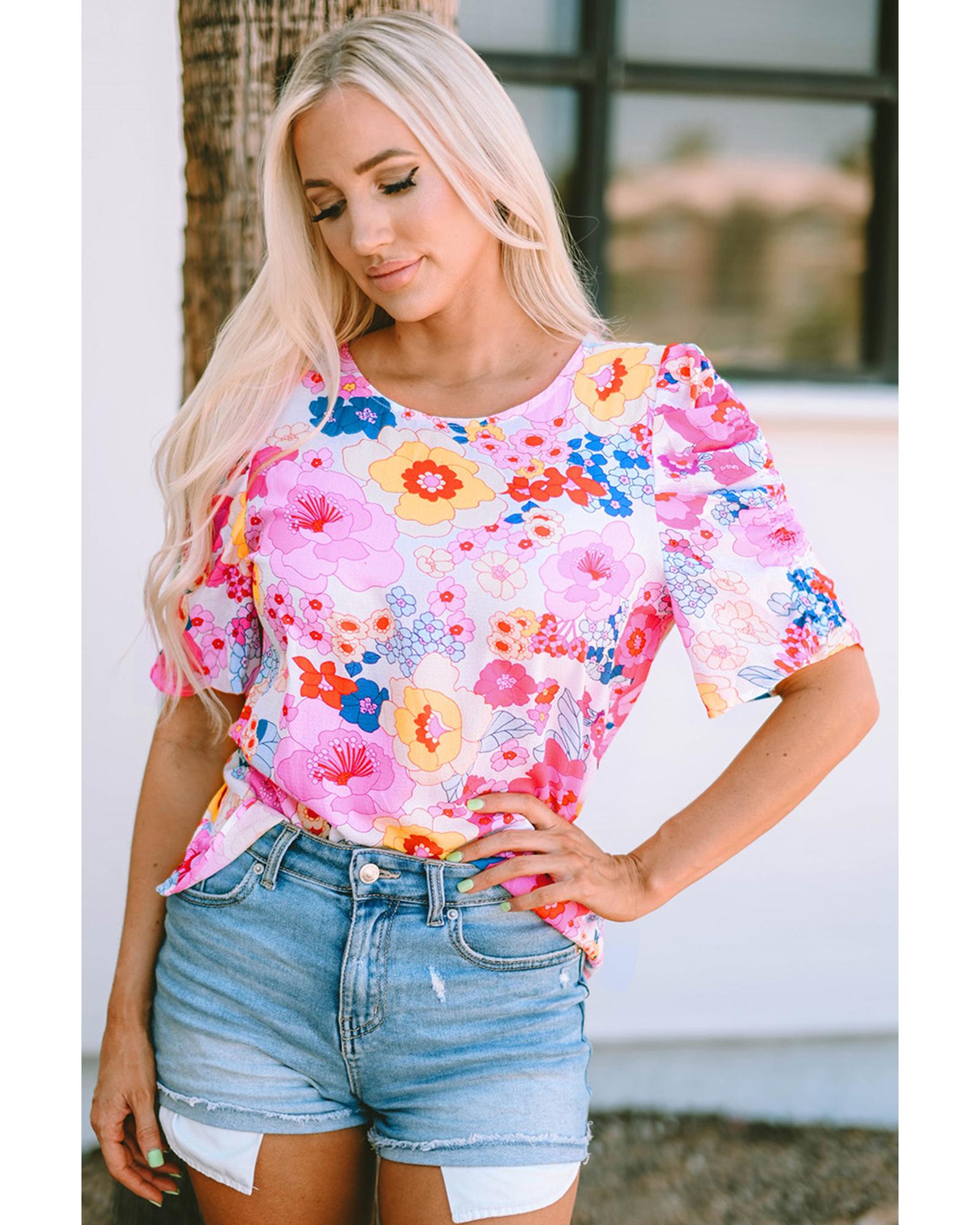 Azura Exchange Floral Print Bubble Sleeve Shirt - S