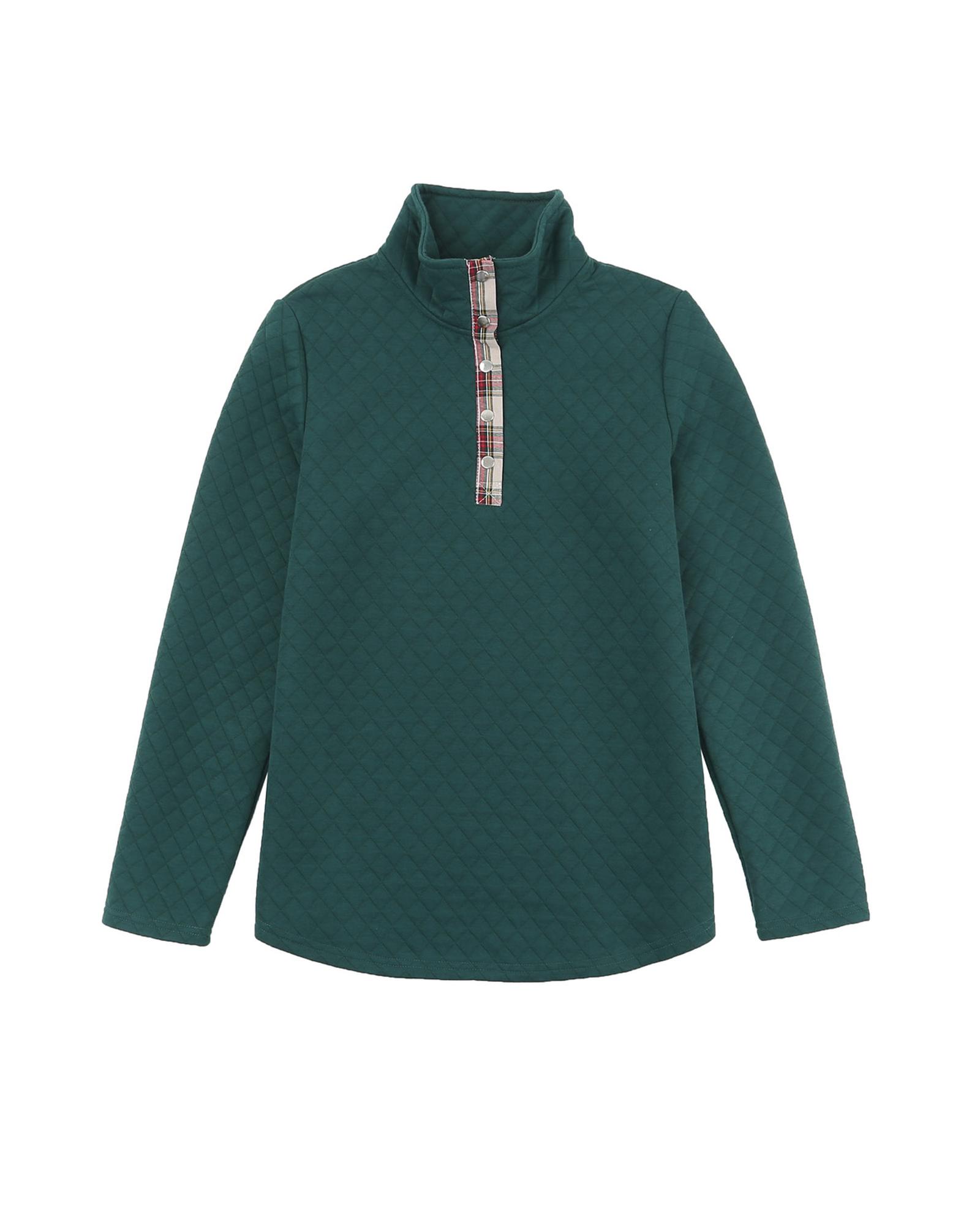 • Stylish Geometric Texture Plaid Trim Sweatshirt