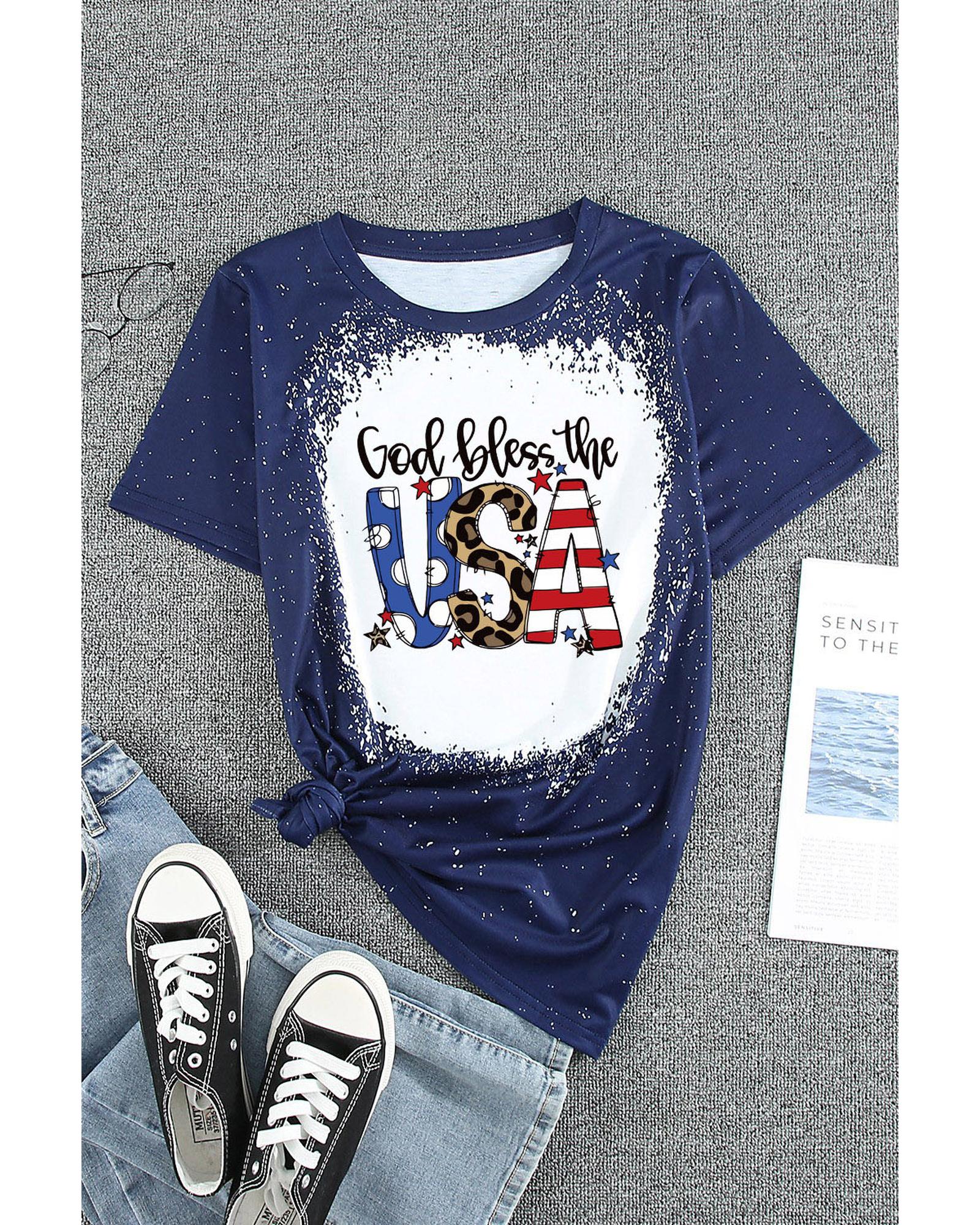 - Womens God Bless the USA Print Bleach Short Sleeve T-Shirt